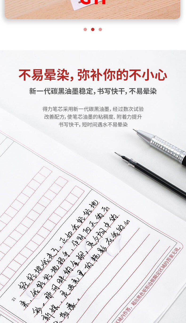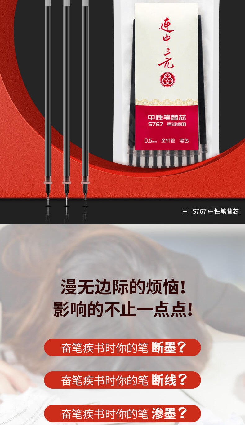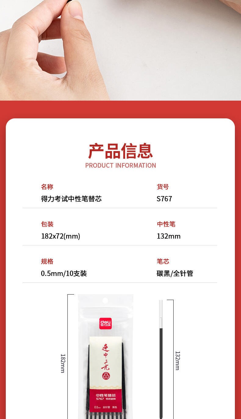 得力連中三元中性筆芯0.5mm 碳素黑筆芯0.5黑色學(xué)生考試專用筆芯 【全針管 連中三元】黑色 10支/袋 S767 自營(yíng)