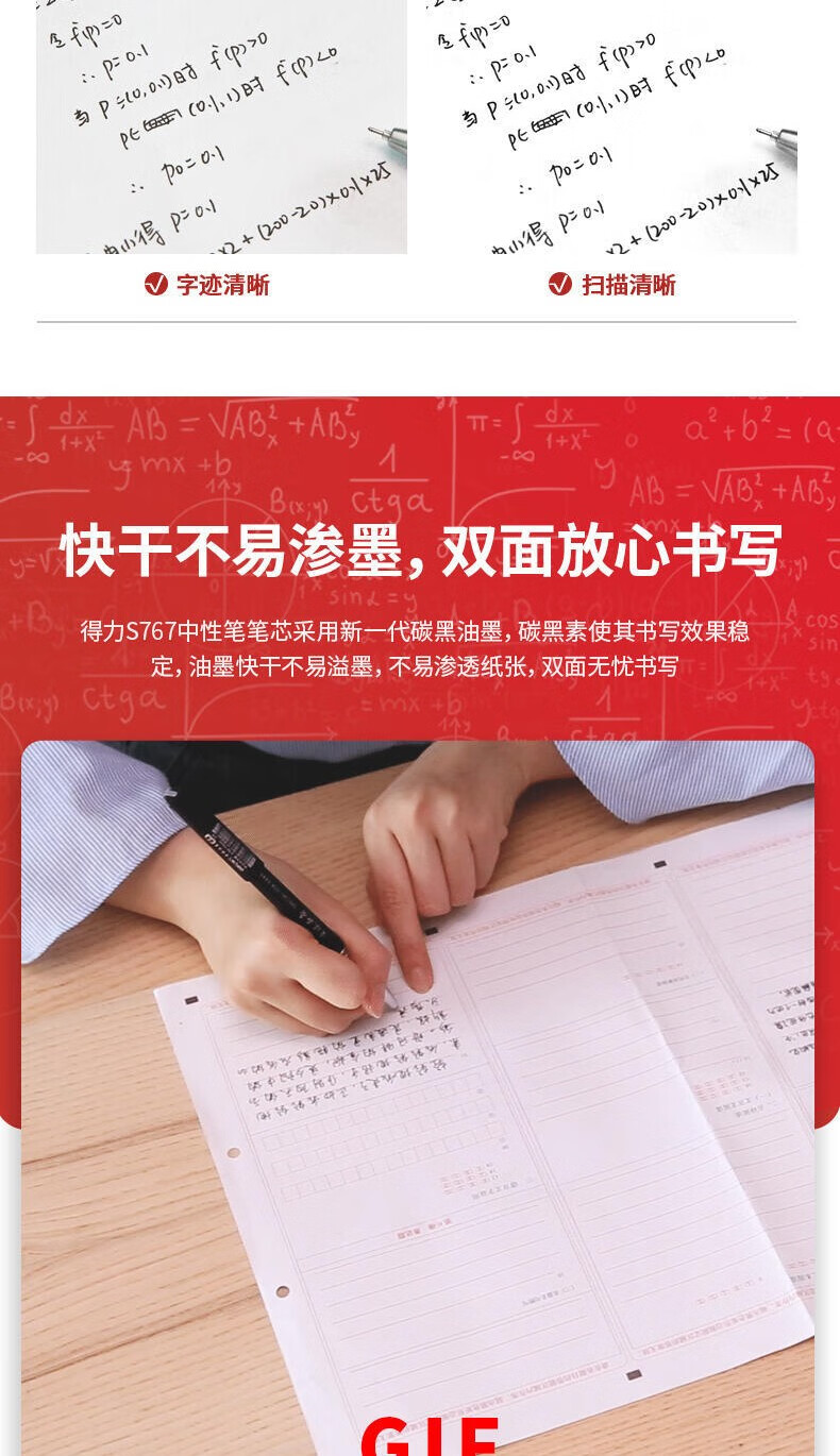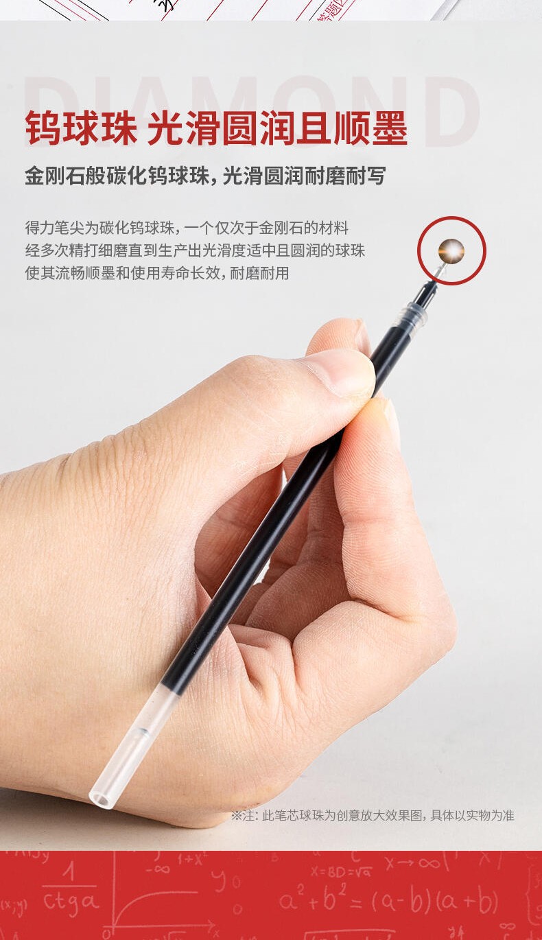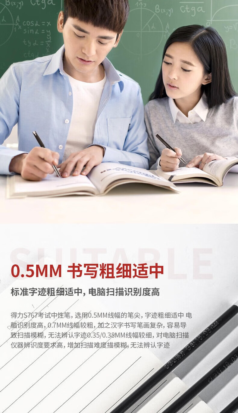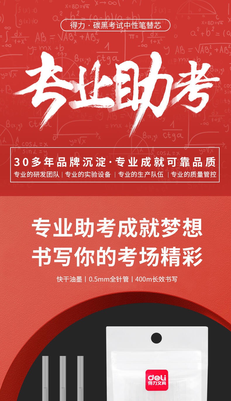 得力連中三元中性筆芯0.5mm 碳素黑筆芯0.5黑色學(xué)生考試專用筆芯 【全針管 連中三元】黑色 10支/袋 S767 自營(yíng)