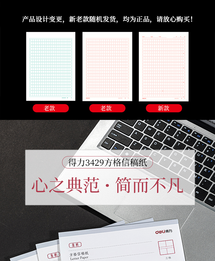 得力(deli)3本16K/20張方格信紙信稿紙 入黨申請專用紙筆記本子信簽紙草稿紙作業(yè)本 3429 自營