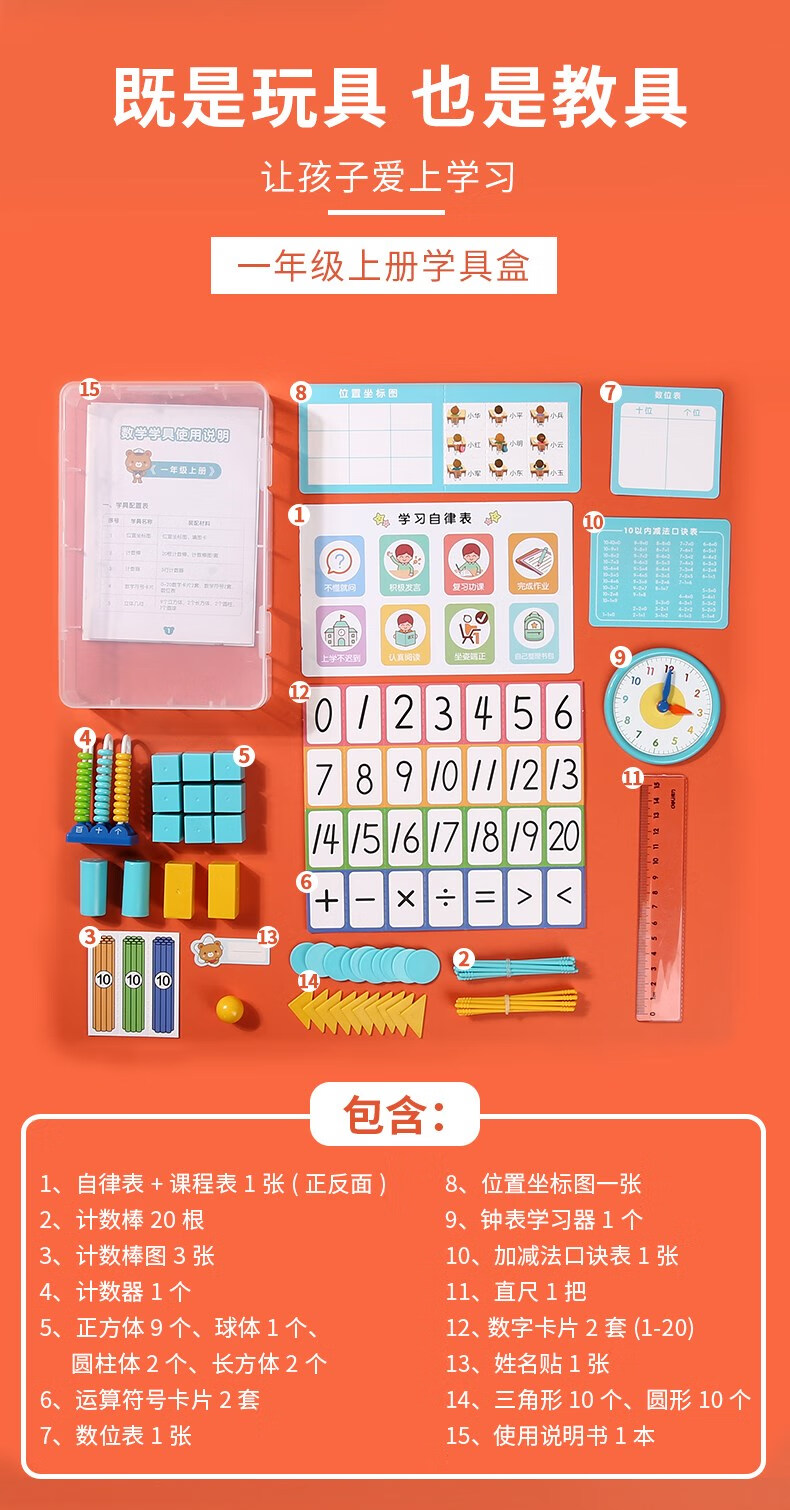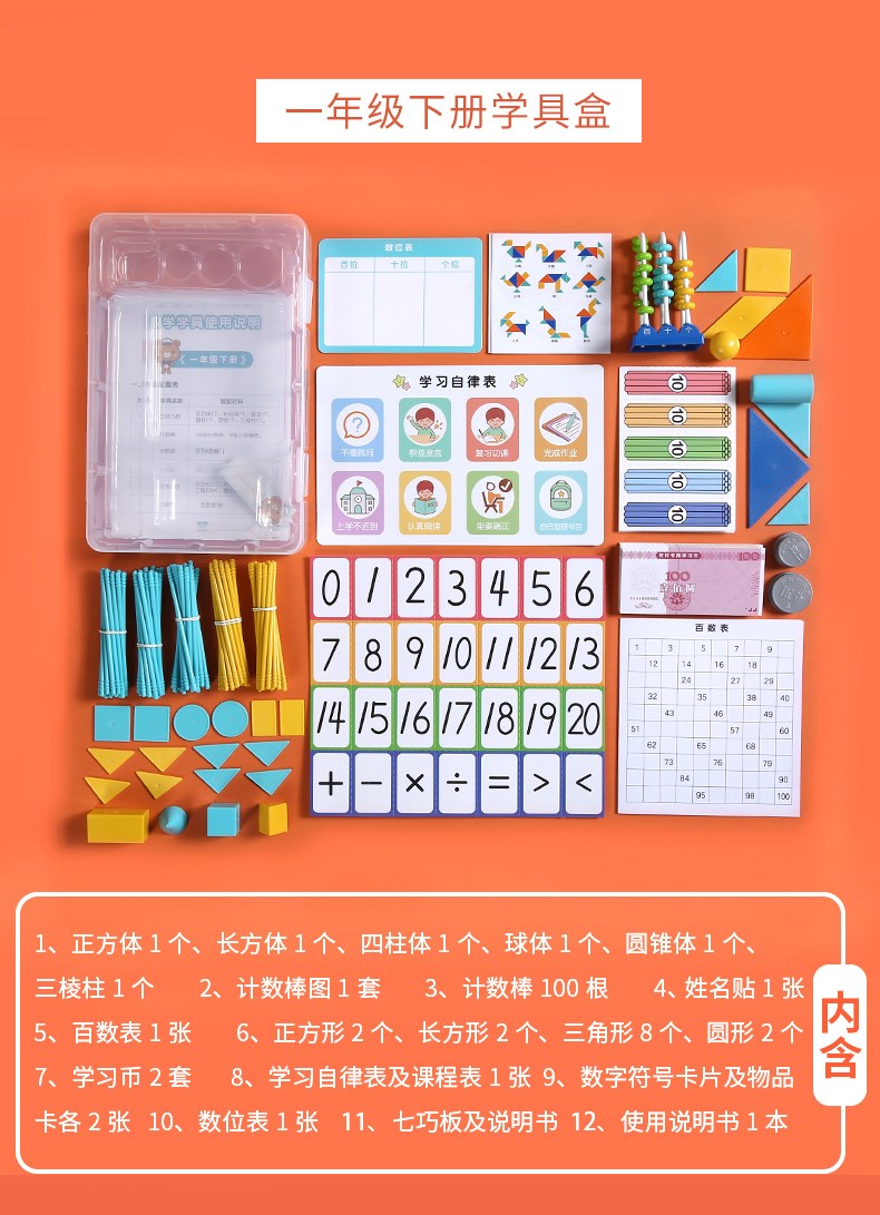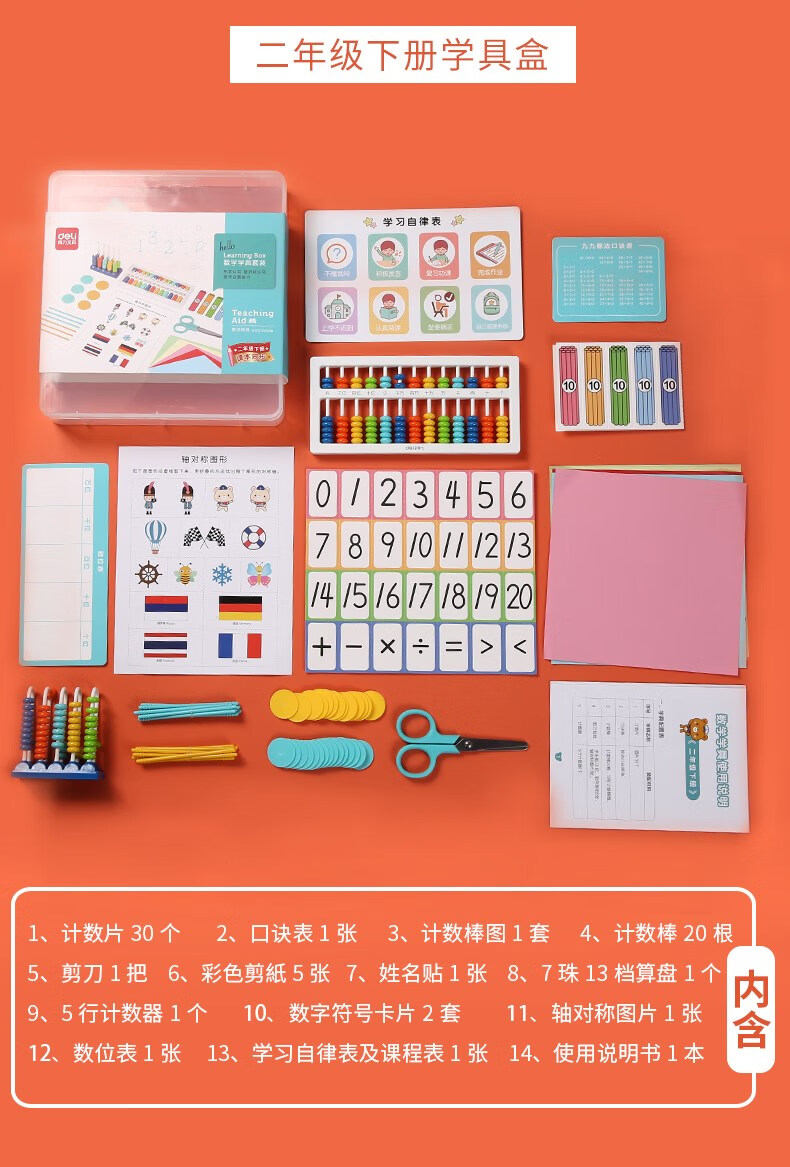 得力(deli)數(shù)學(xué)學(xué)具盒套裝計數(shù)器小學(xué)生一年級上下冊兒童算術(shù)用具學(xué)具套裝 一年級下冊課本同步 74332 自營