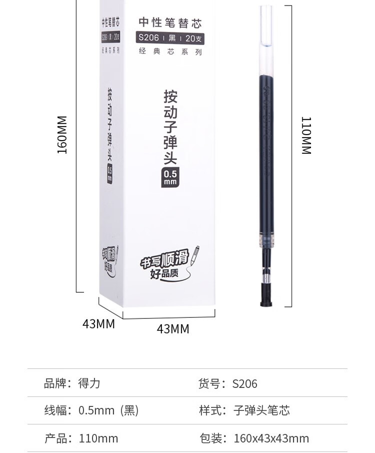 得力按動(dòng)中性筆芯0.5mm彈簧頭按動(dòng)筆芯大容量水筆替芯黑色紅色藍(lán)色筆芯簽字筆按壓式筆芯盒裝批 10支得力黑色筆芯+3支按動(dòng)筆 自營(yíng)