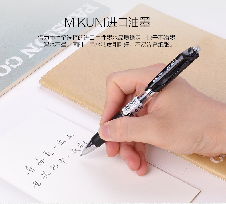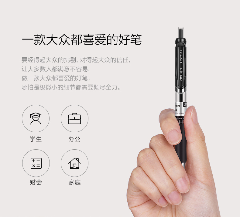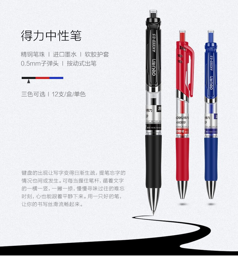 得力(deli)中性筆按動(dòng)簽字筆0.5mm黑色水筆學(xué)生用考試水性碳素按壓式子彈頭辦公用品 12支裝【黑色】 自營(yíng)