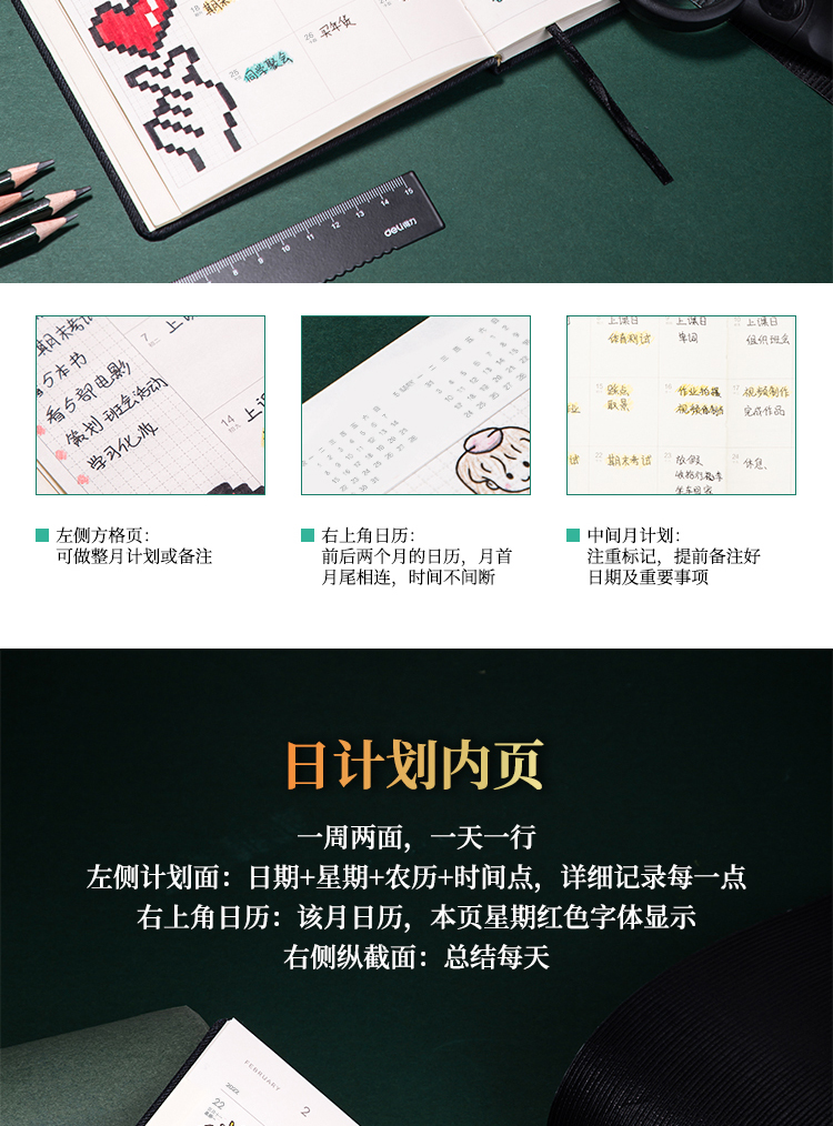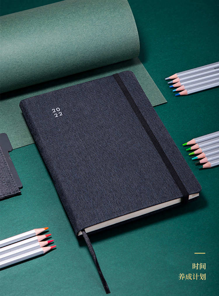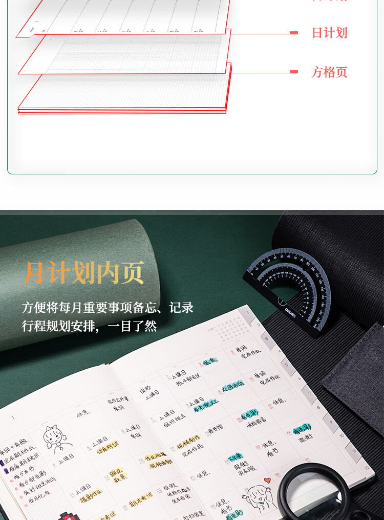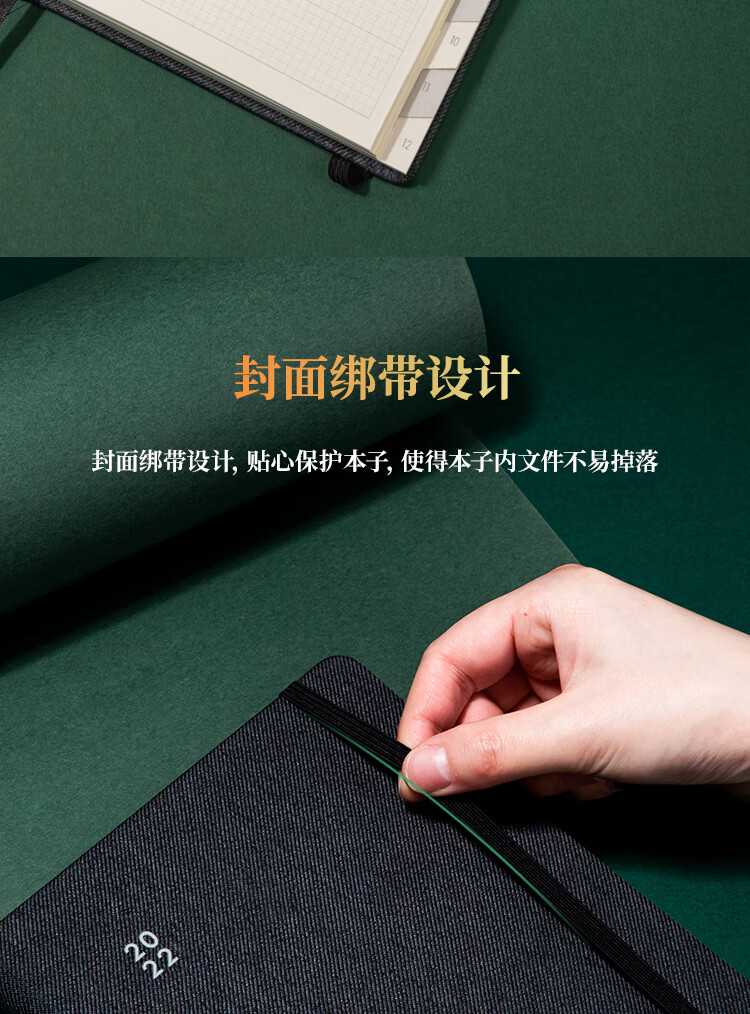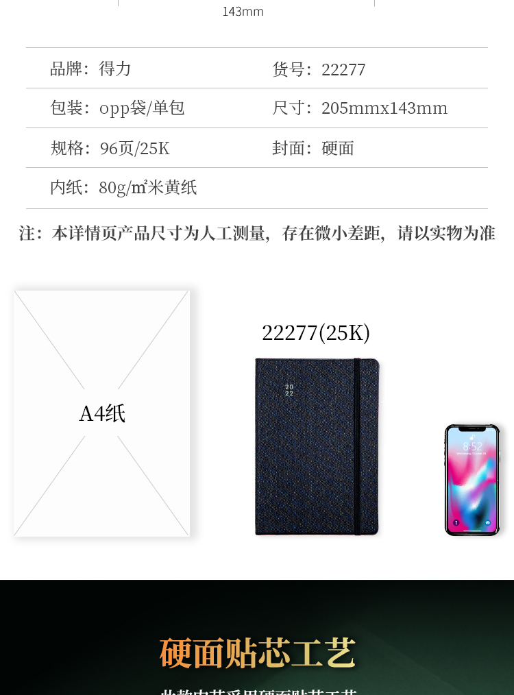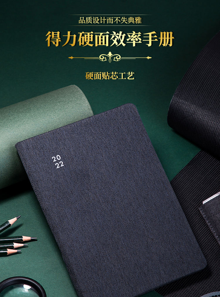 得力(deli) 25K96張綁帶效率手冊筆記本子 2022年日程本工作本計劃本記事本 黑色22277 自營