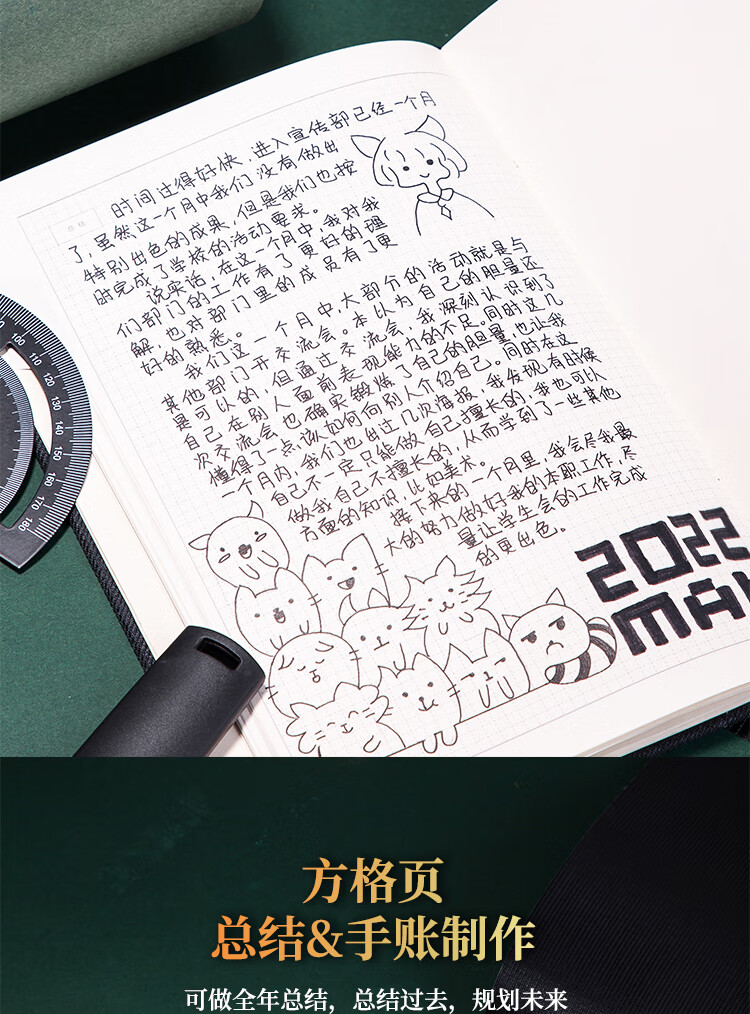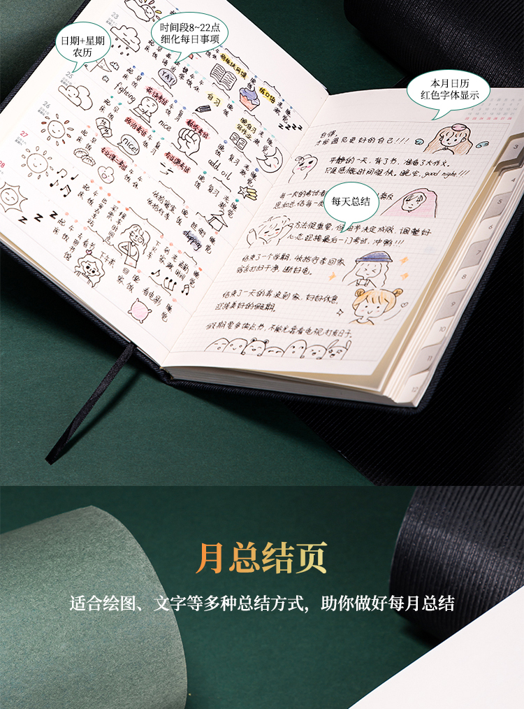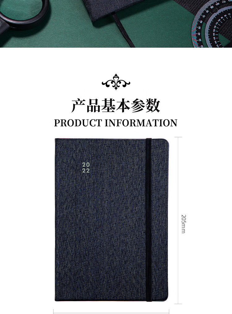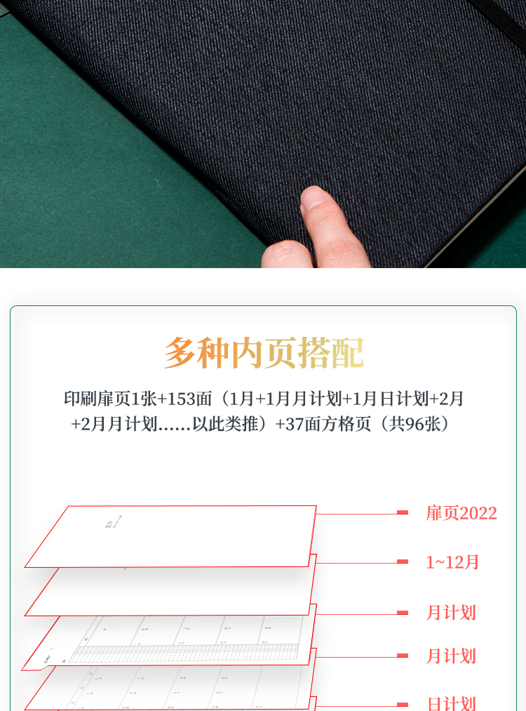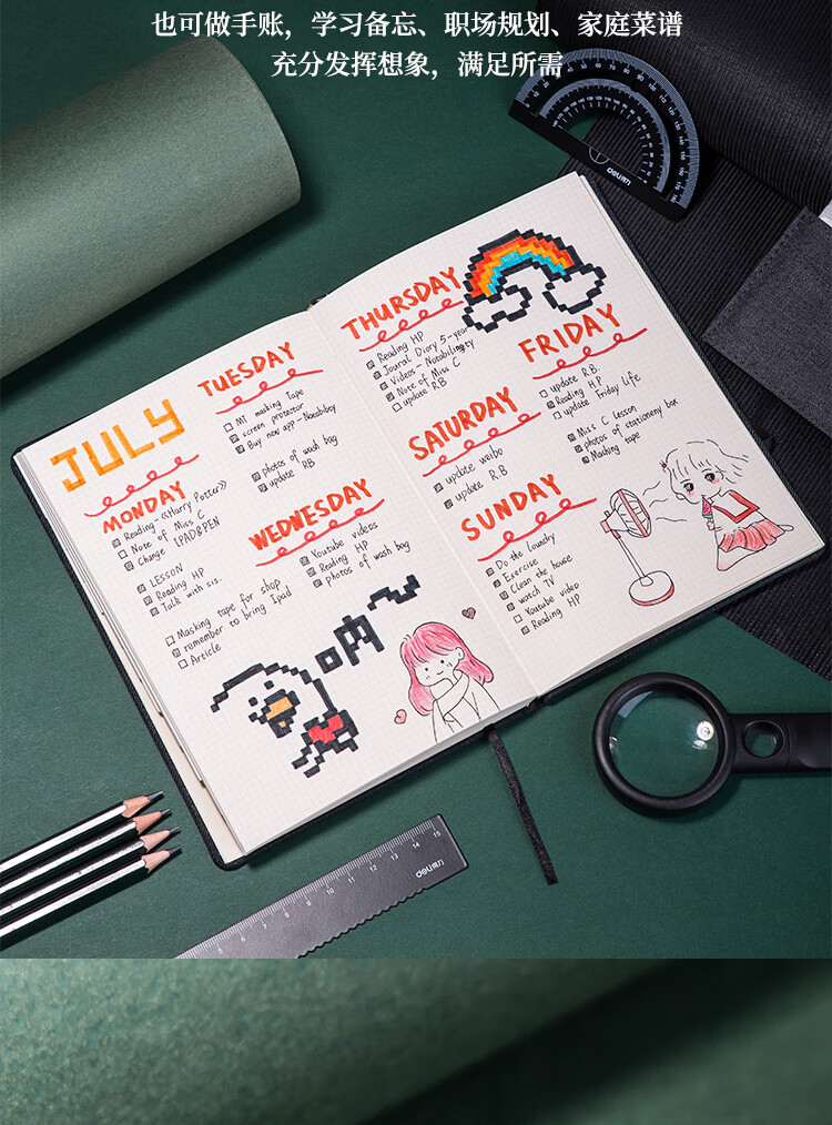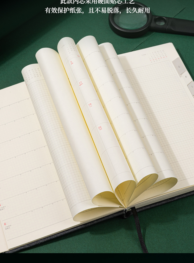 得力(deli) 25K96張綁帶效率手冊筆記本子 2022年日程本工作本計劃本記事本 黑色22277 自營