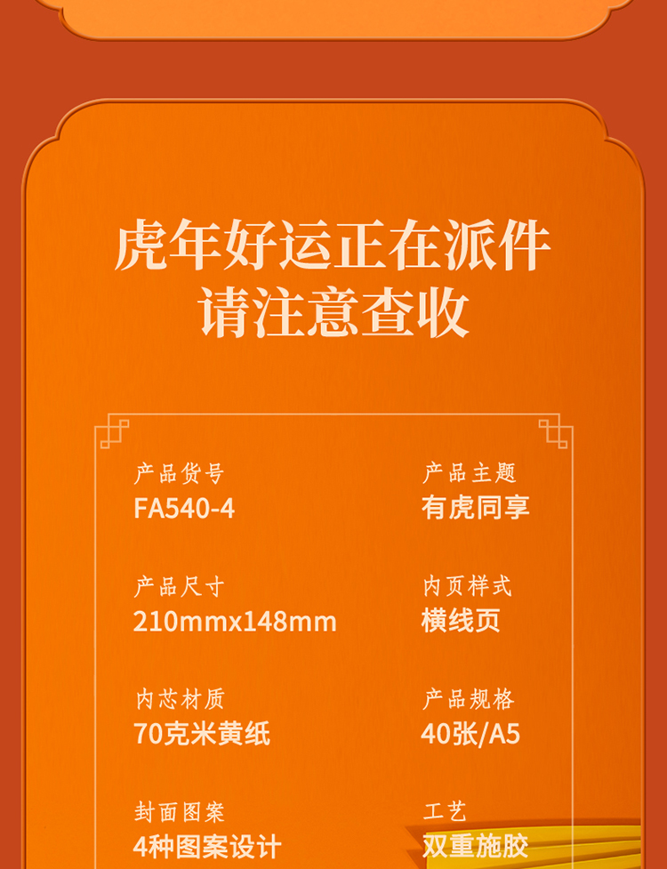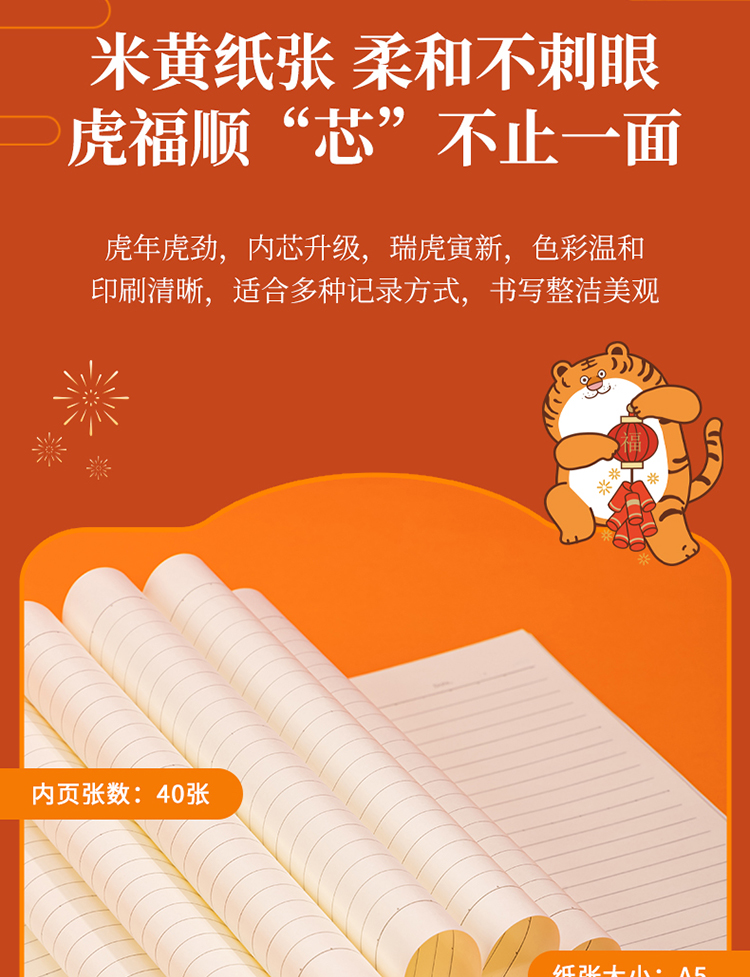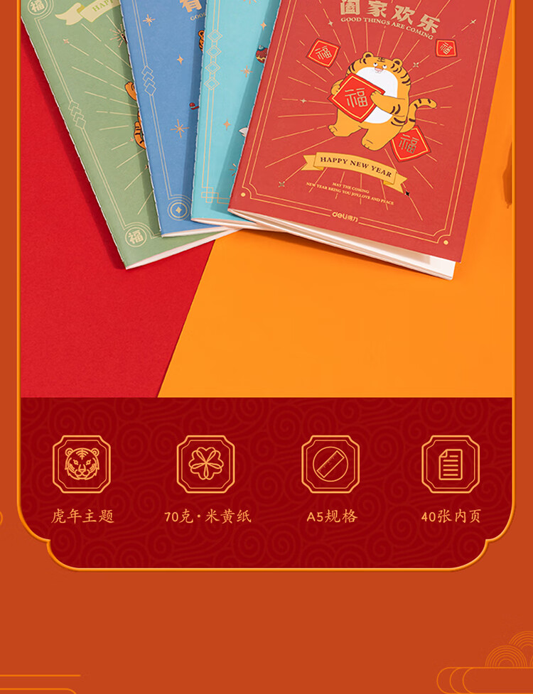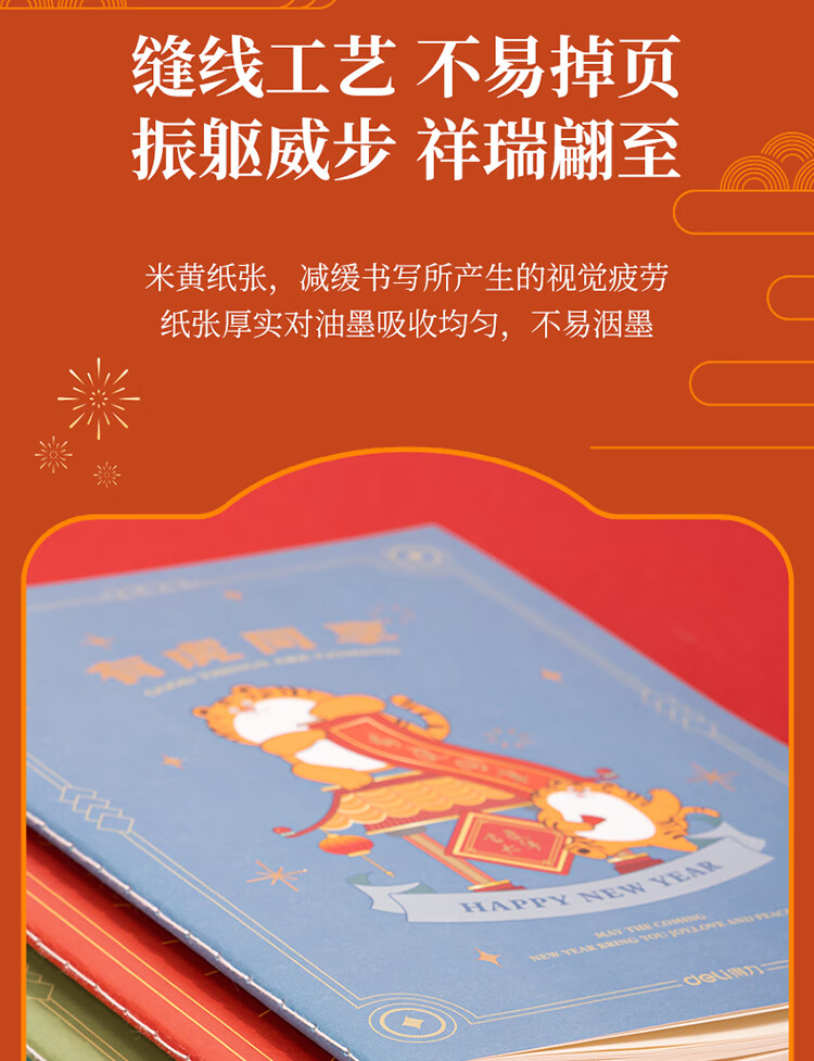 得力(deli)4本A5/40張有虎同享系列學生縫線軟抄本 課堂作業(yè)本記事本日記本筆記本子文具 FA540-4 自營