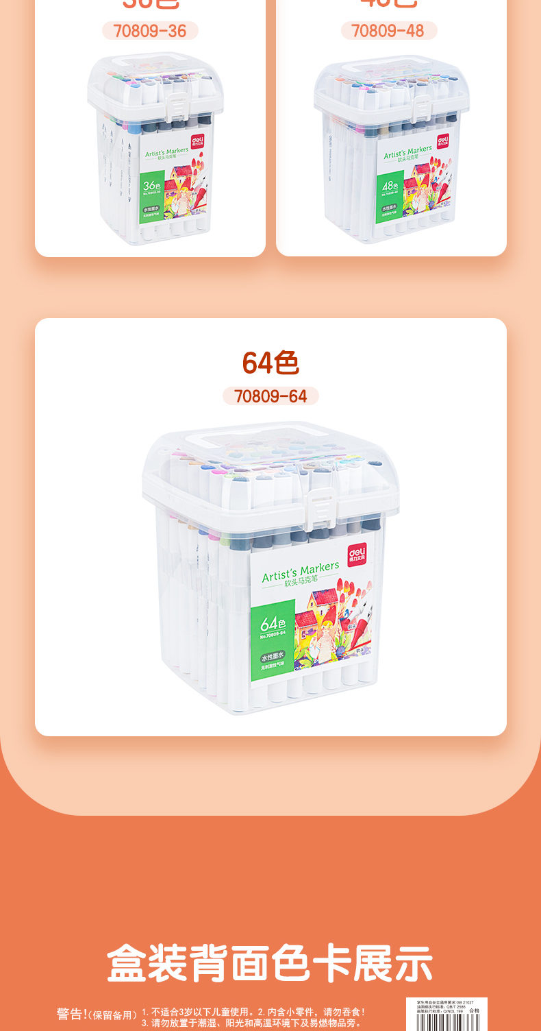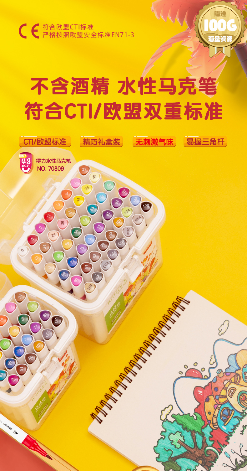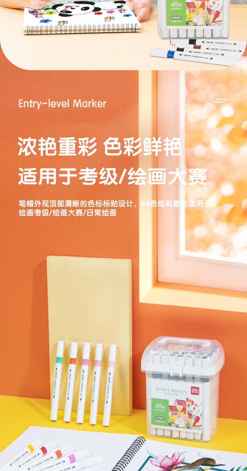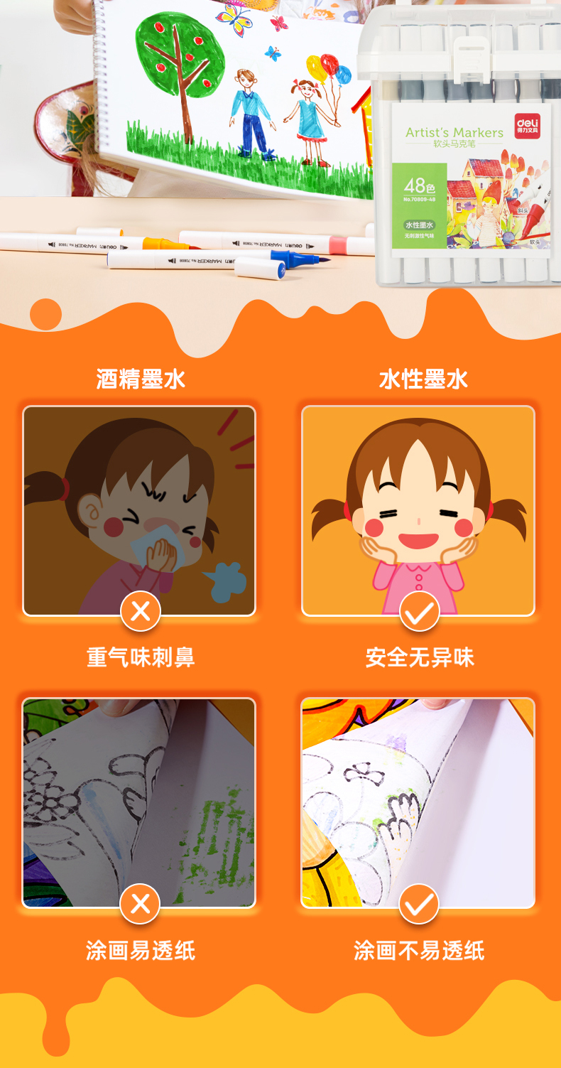 ¥3.40得力(deli)48色水性馬克筆套裝 雙頭無酒精味軟頭水彩筆兒童學(xué)生美術(shù)專用繪畫畫筆套裝 70809-48