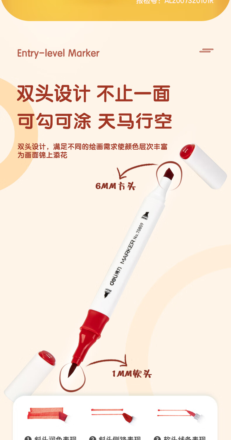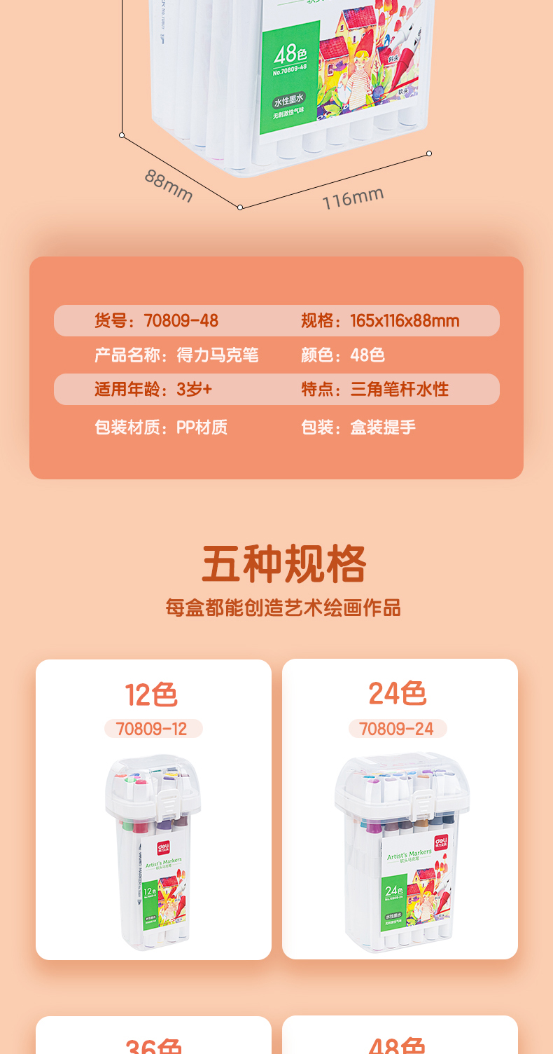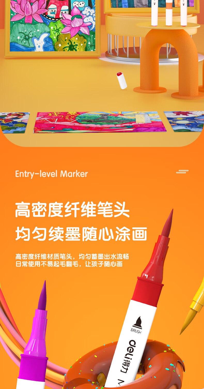 ¥3.40得力(deli)48色水性馬克筆套裝 雙頭無酒精味軟頭水彩筆兒童學(xué)生美術(shù)專用繪畫畫筆套裝 70809-48