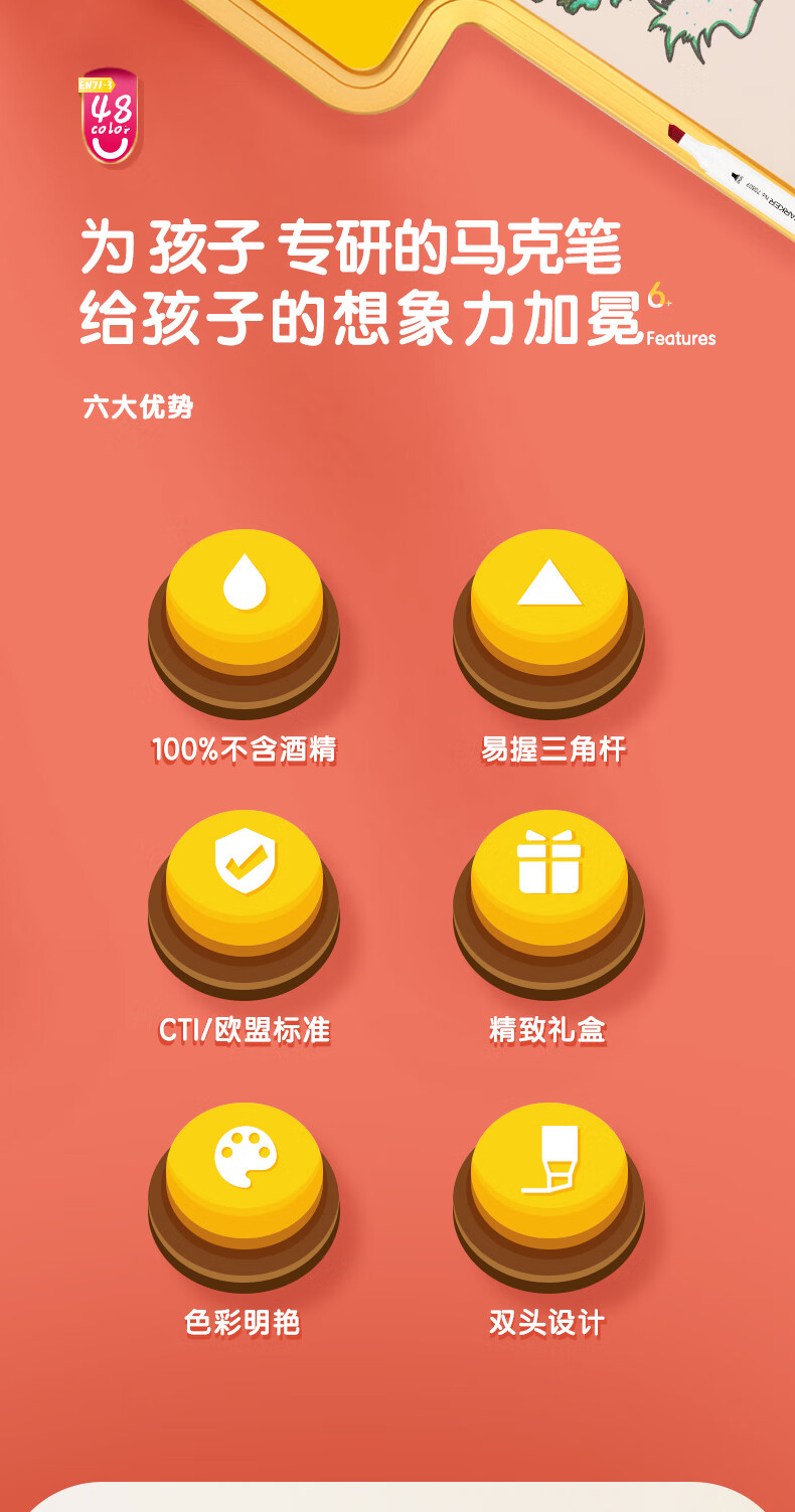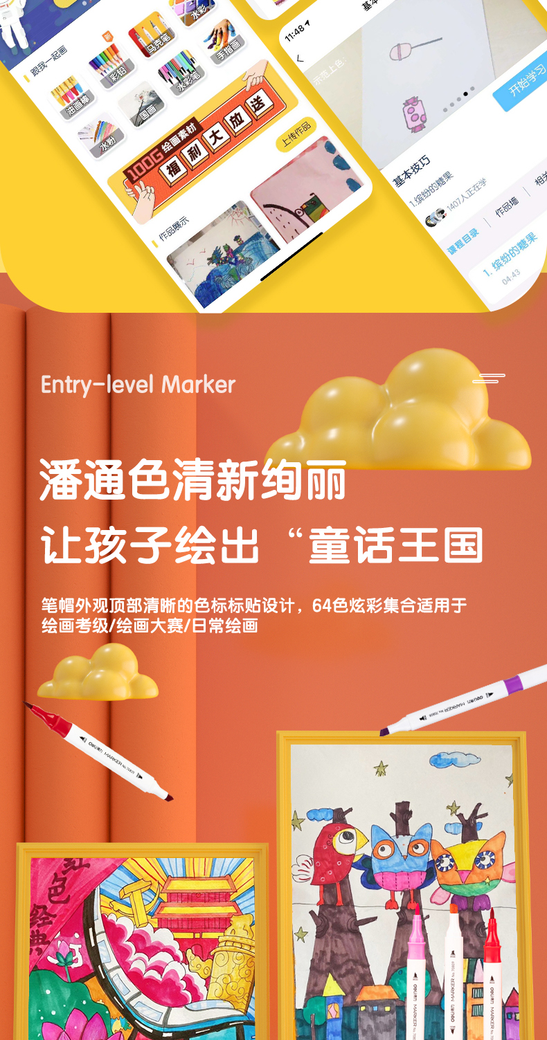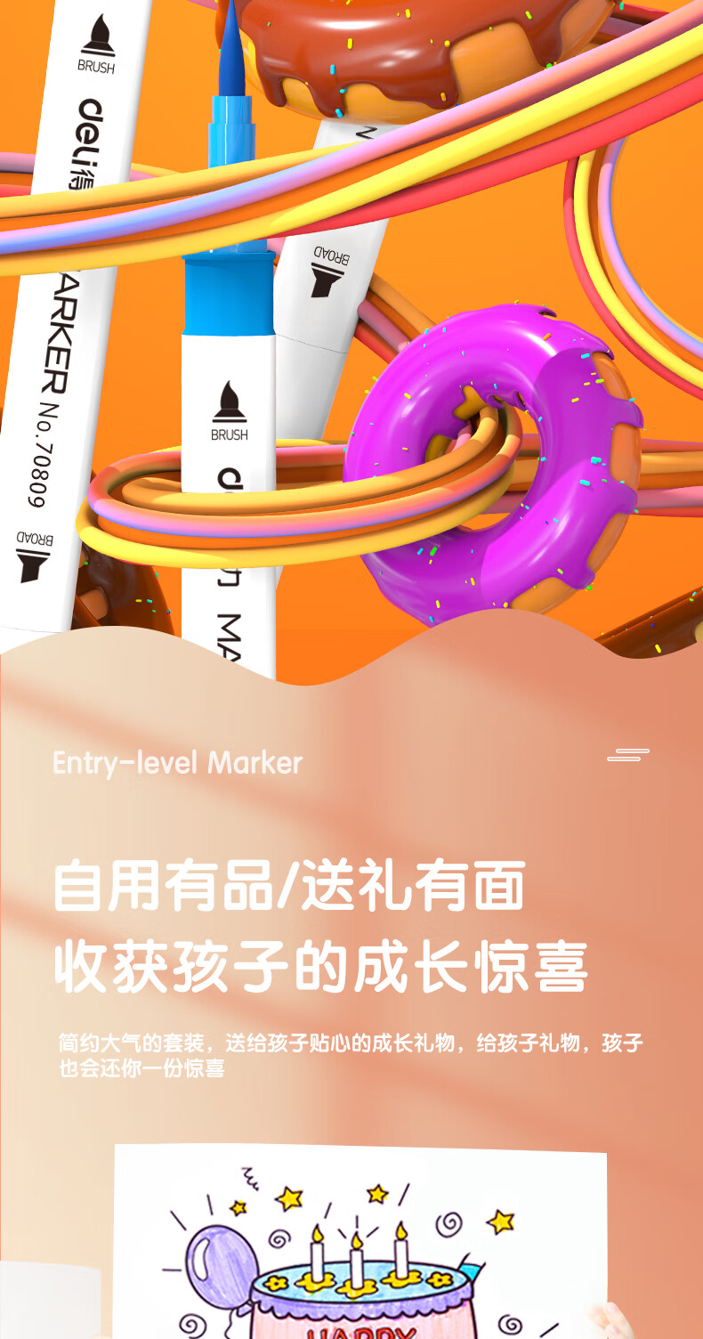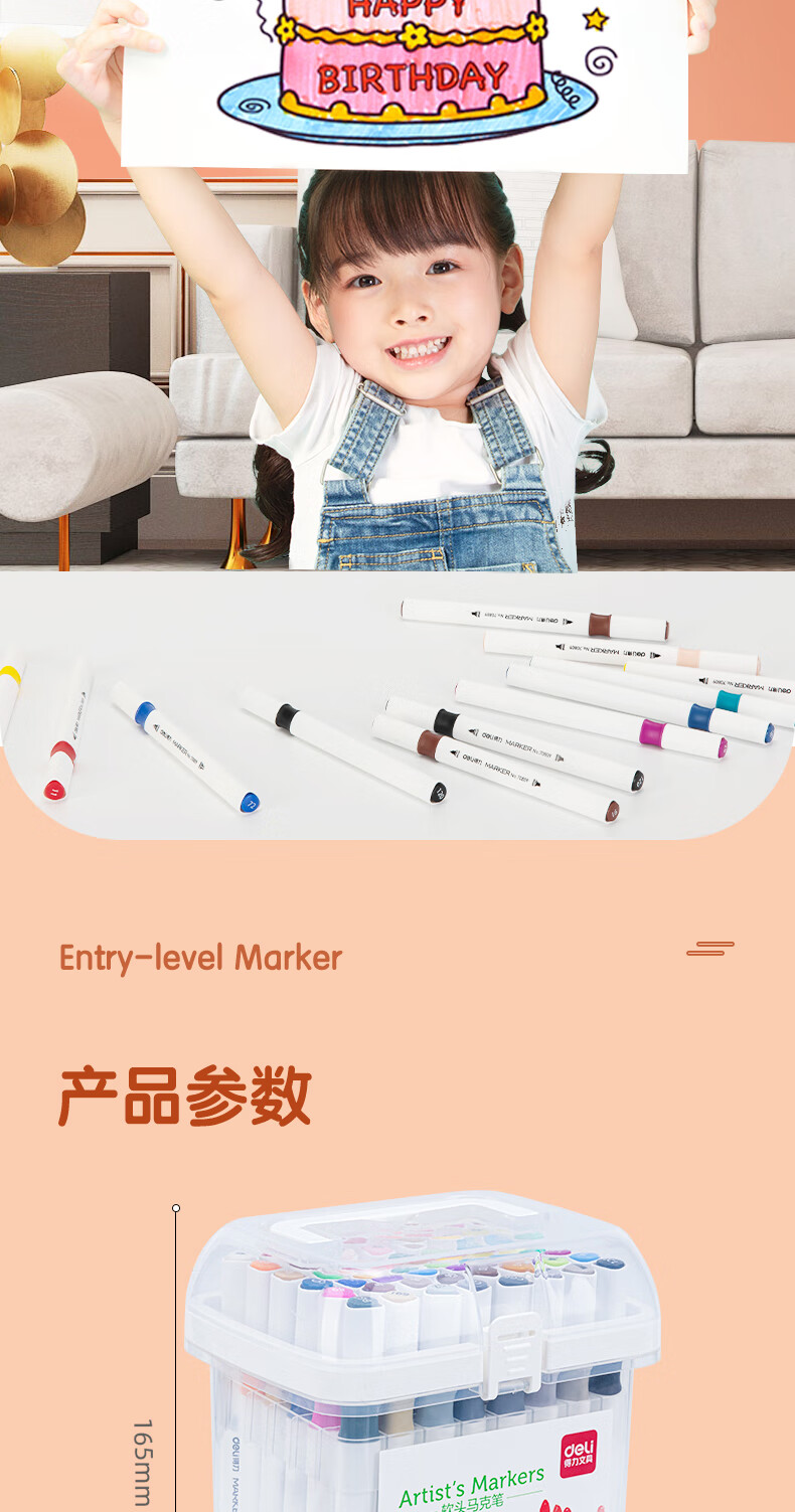 ¥3.40得力(deli)48色水性馬克筆套裝 雙頭無酒精味軟頭水彩筆兒童學(xué)生美術(shù)專用繪畫畫筆套裝 70809-48