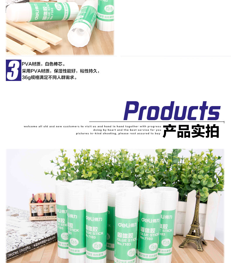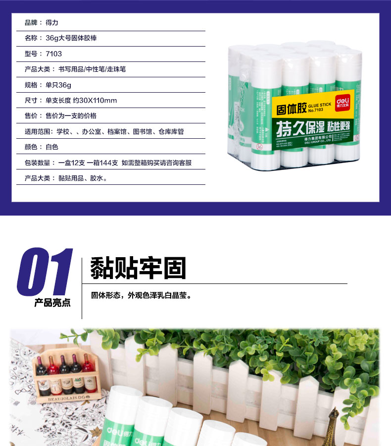 得力(deli) 7103 固體膠水 大號 36g 膠棒 固體膠 12支裝 自營