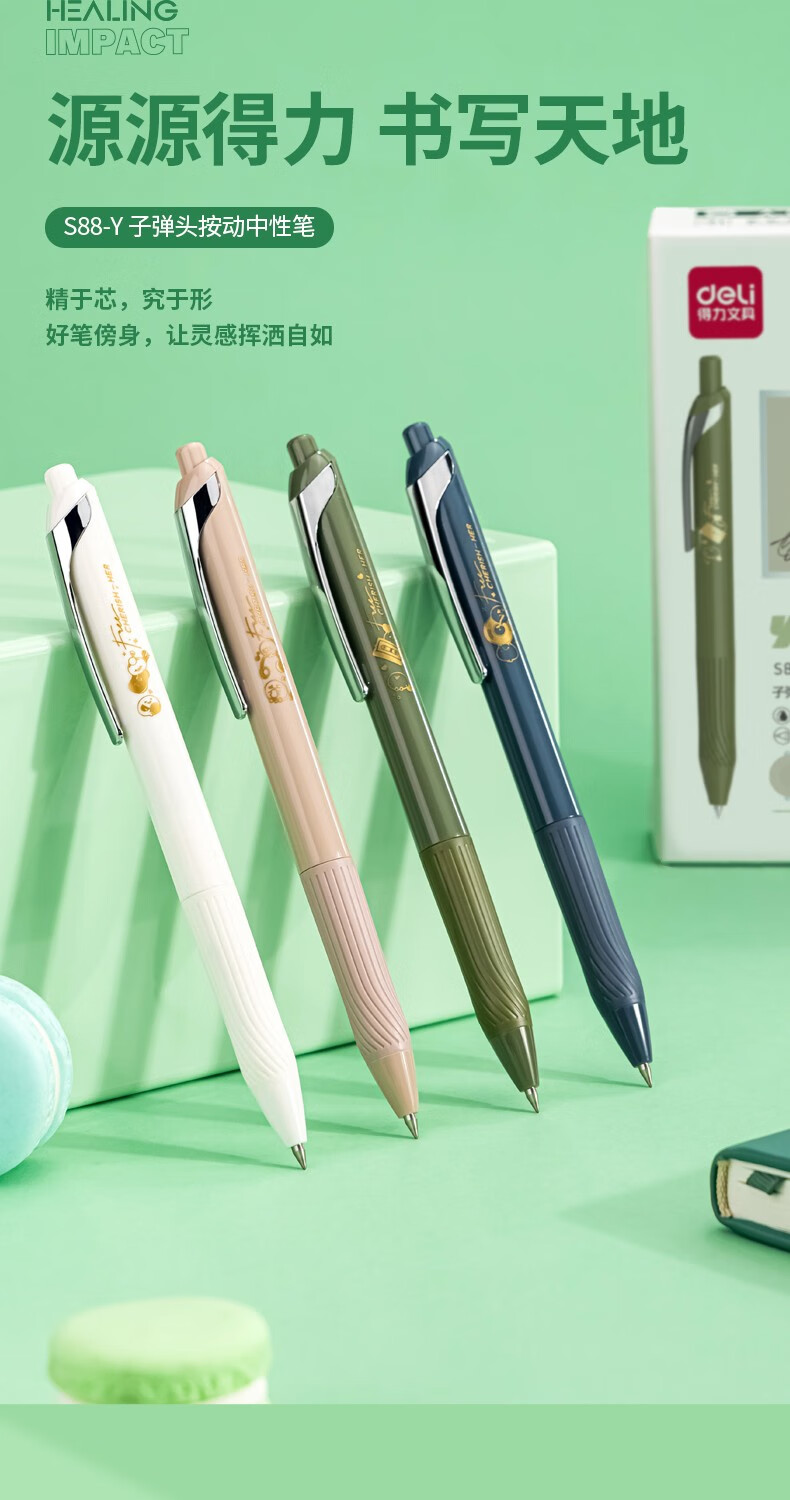¥17.36得力(deli)樂素按動中性筆 高端高顏值辦公簽字筆韓國小清新學(xué)生創(chuàng)意可愛碳素水筆 0.5mm A12重手感6支裝/筆桿隨機