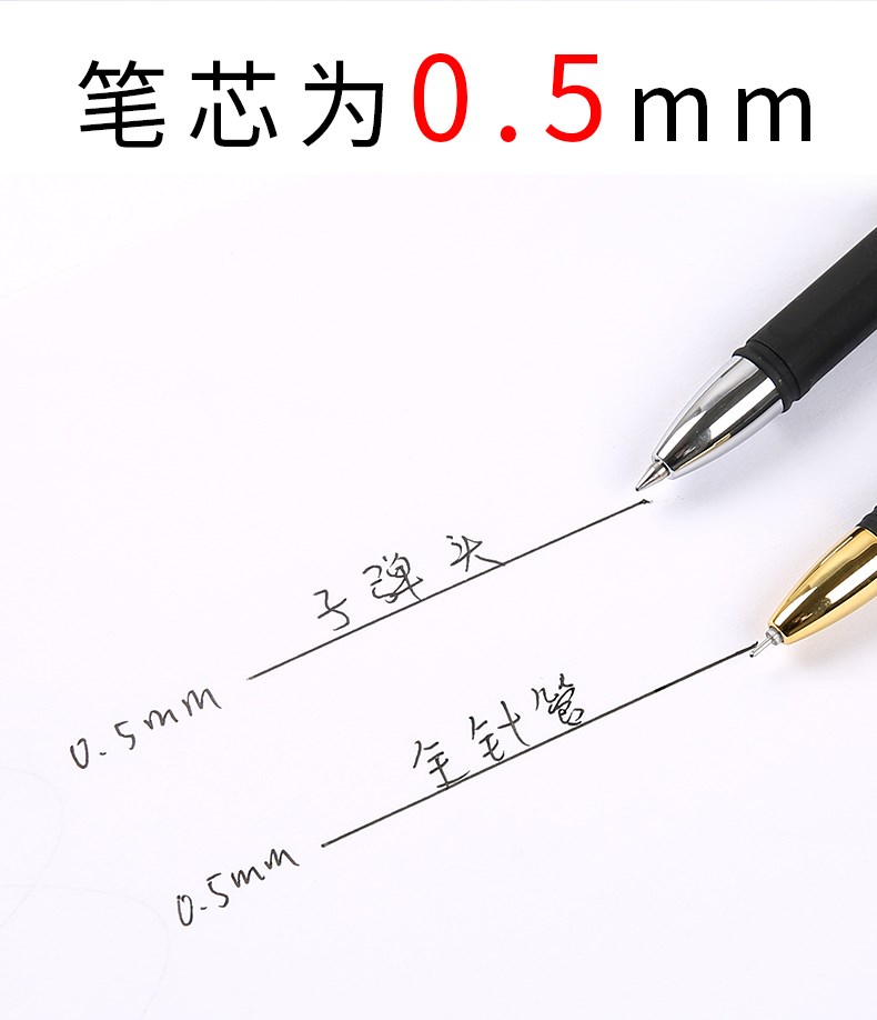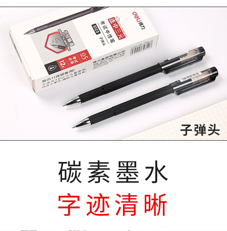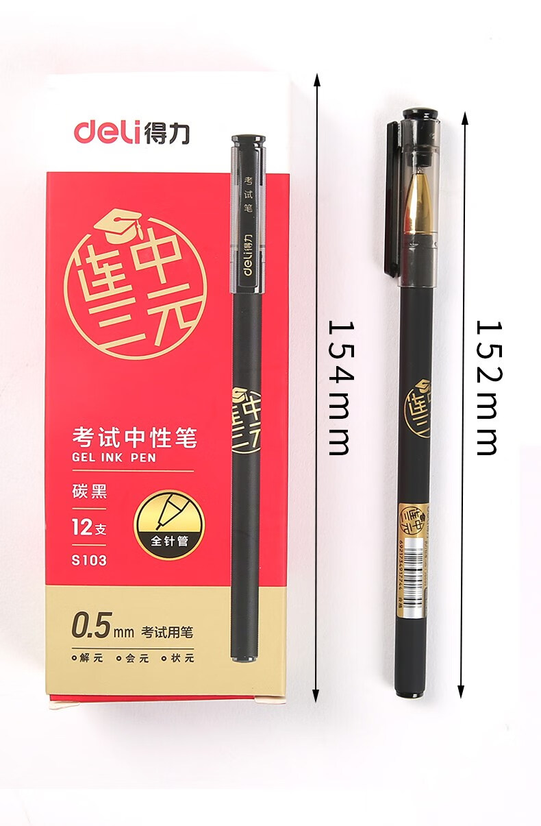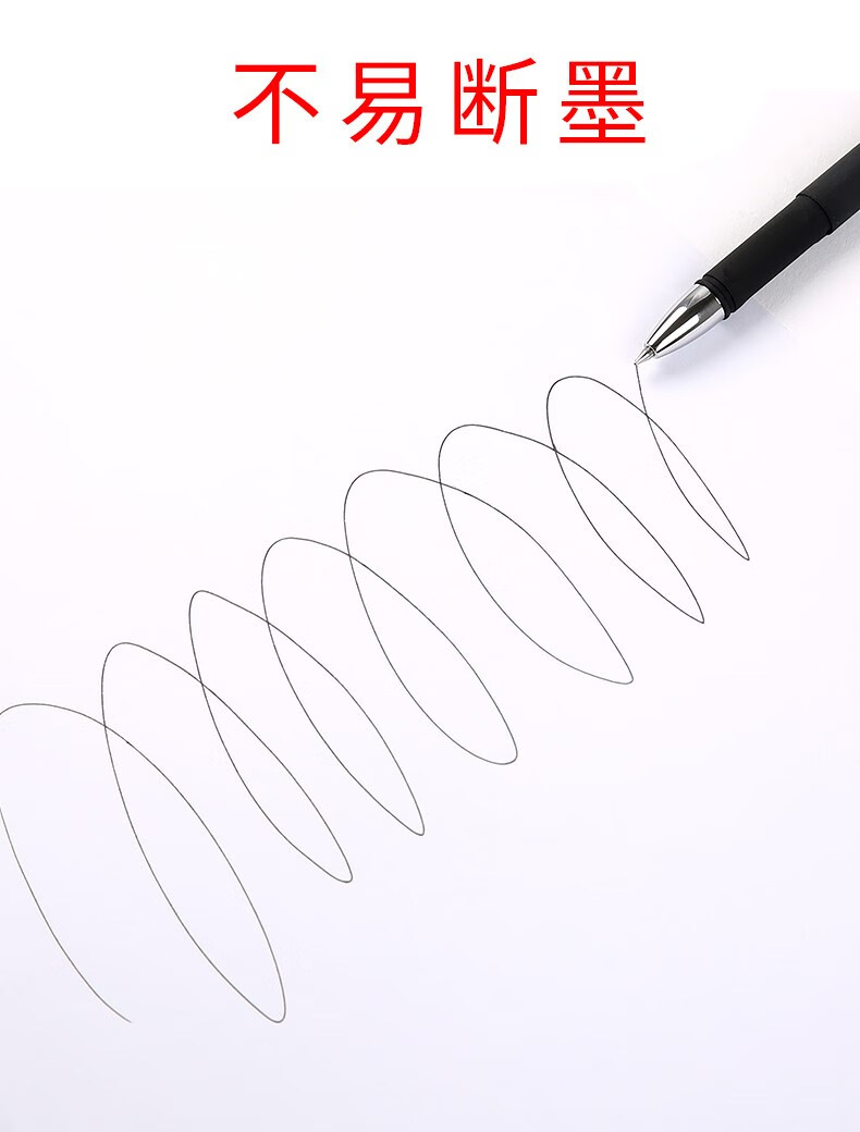 ¥24.25得力按動中性筆頭0.5mm學生用考試辦公商務專用彈簧碳素自動水筆圓珠簽字按動式按壓筆 按動黑筆52件套(12支筆+40支筆芯)