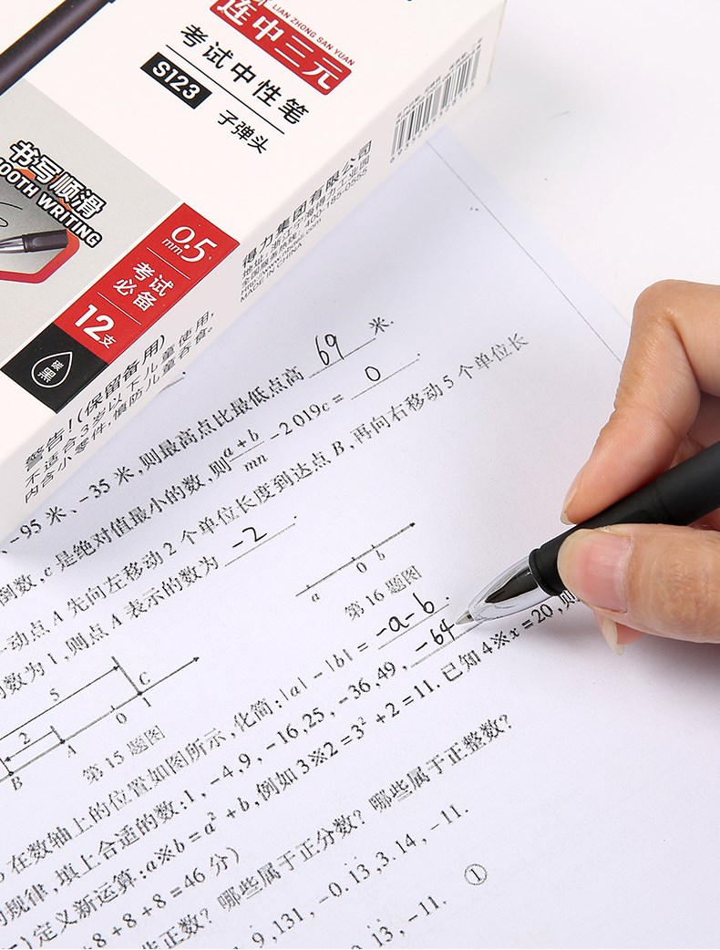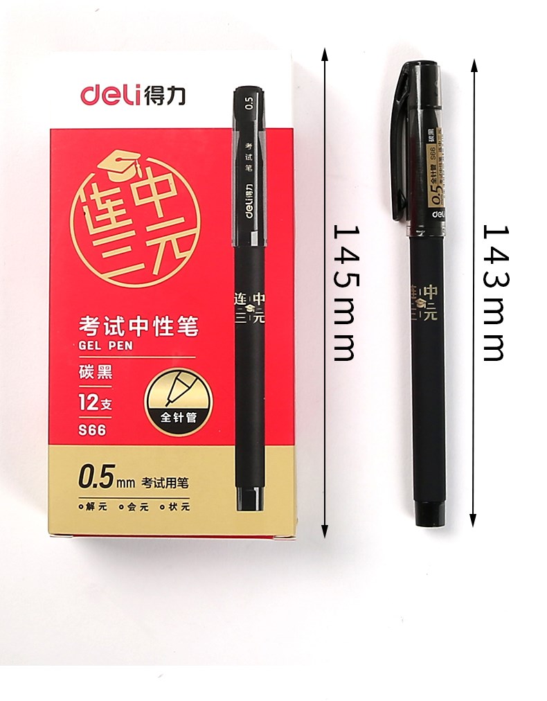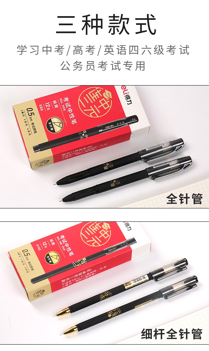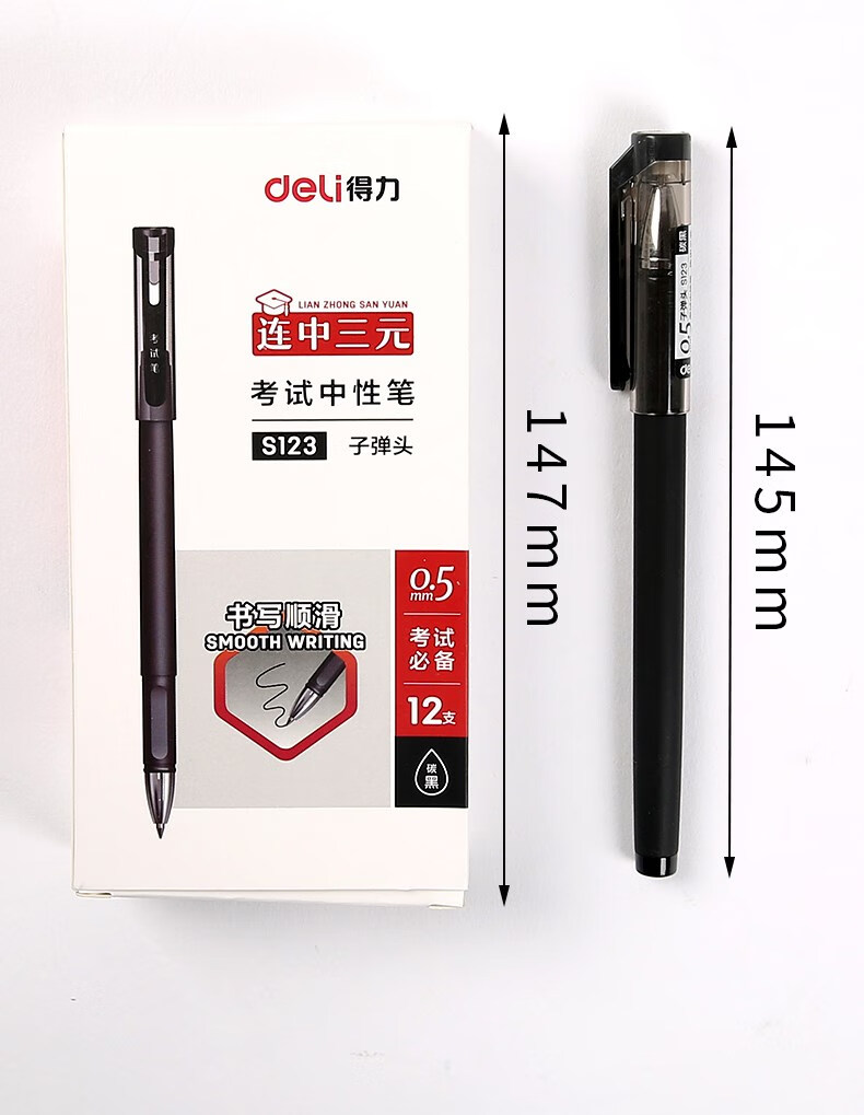 ¥24.25得力按動中性筆頭0.5mm學生用考試辦公商務專用彈簧碳素自動水筆圓珠簽字按動式按壓筆 按動黑筆52件套(12支筆+40支筆芯)