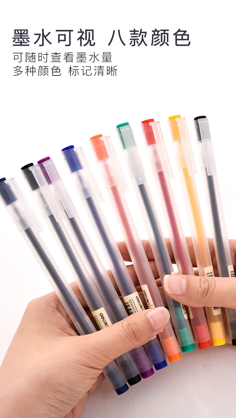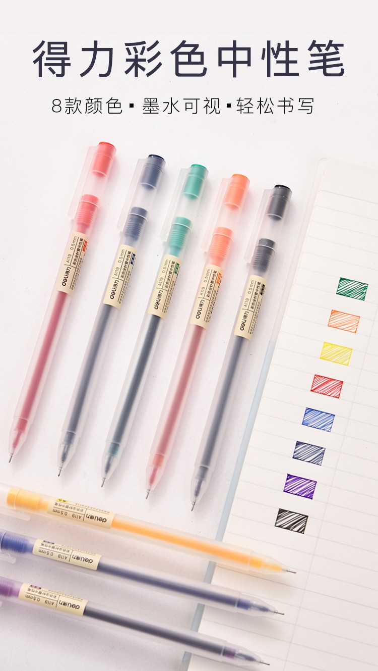 ¥24.25得力按動中性筆頭0.5mm學(xué)生用考試辦公商務(wù)專用彈簧碳素自動水筆圓珠簽字按動式按壓筆 按動黑筆52件套(12支筆+40支筆芯)