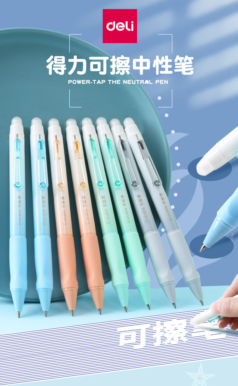 ¥24.25得力按動中性筆頭0.5mm學(xué)生用考試辦公商務(wù)專用彈簧碳素自動水筆圓珠簽字按動式按壓筆 按動黑筆52件套(12支筆+40支筆芯)