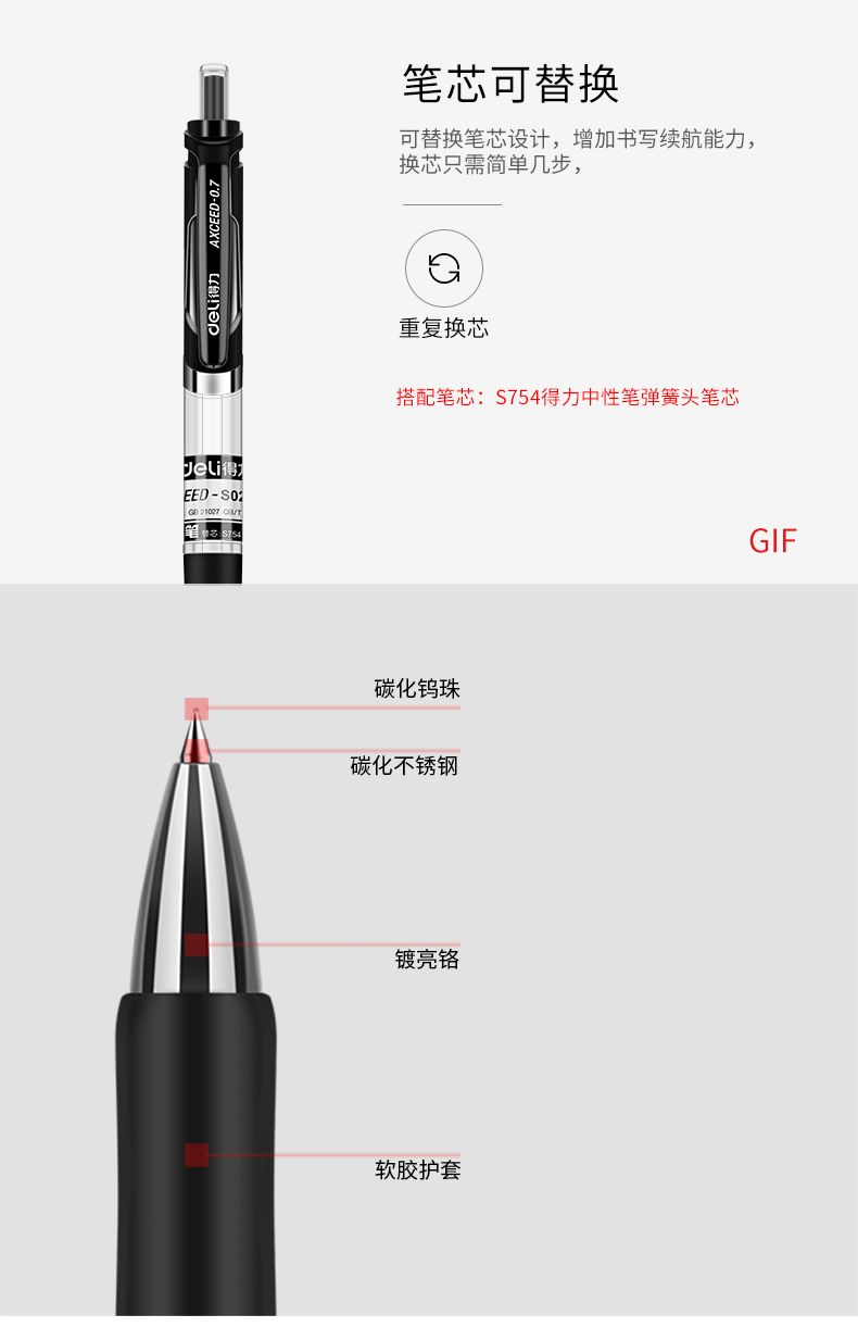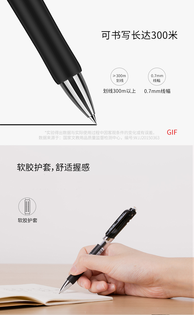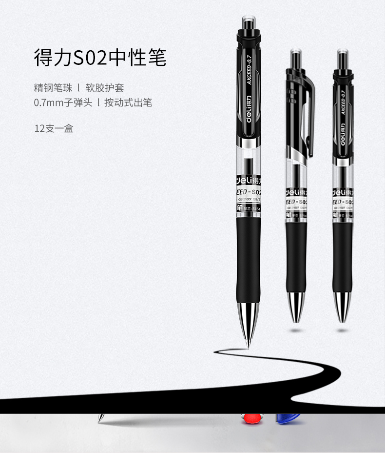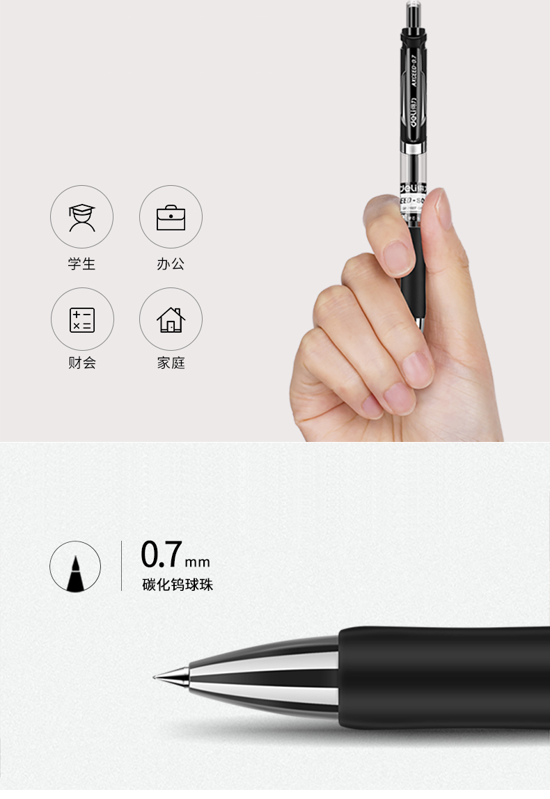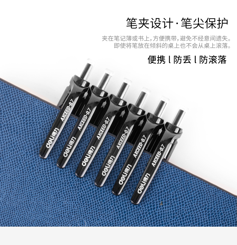 ¥24.25得力按動中性筆頭0.5mm學(xué)生用考試辦公商務(wù)專用彈簧碳素自動水筆圓珠簽字按動式按壓筆 按動黑筆52件套(12支筆+40支筆芯)