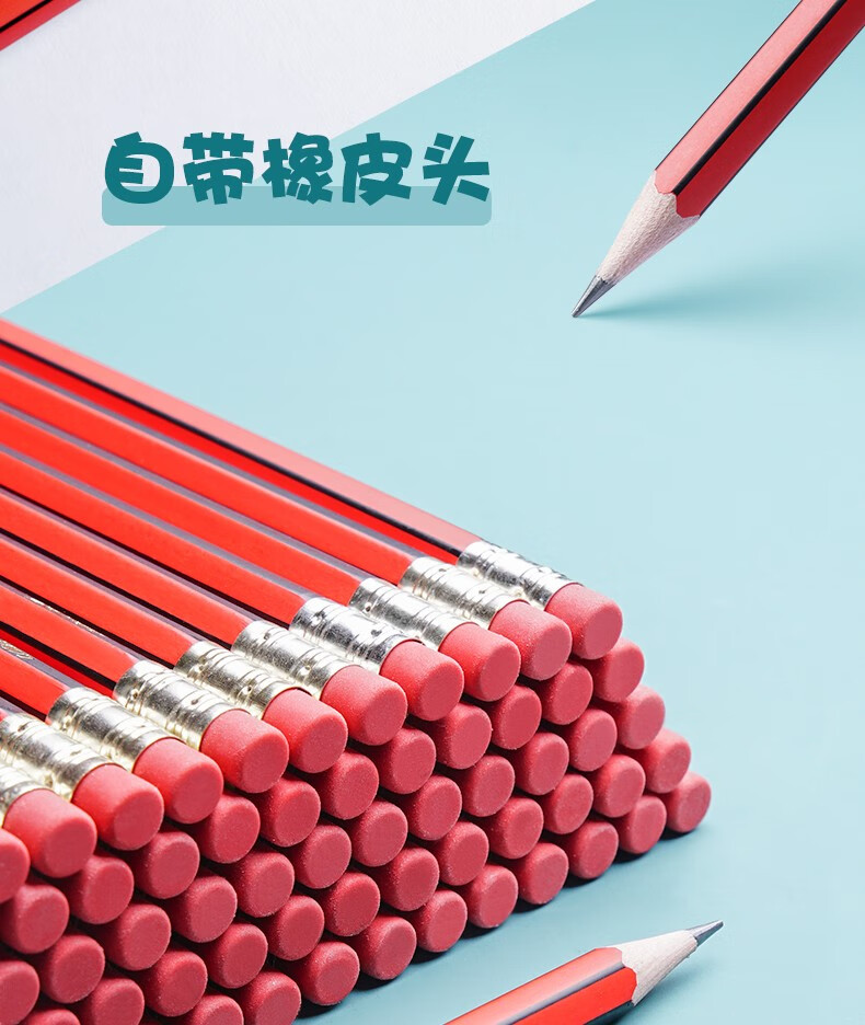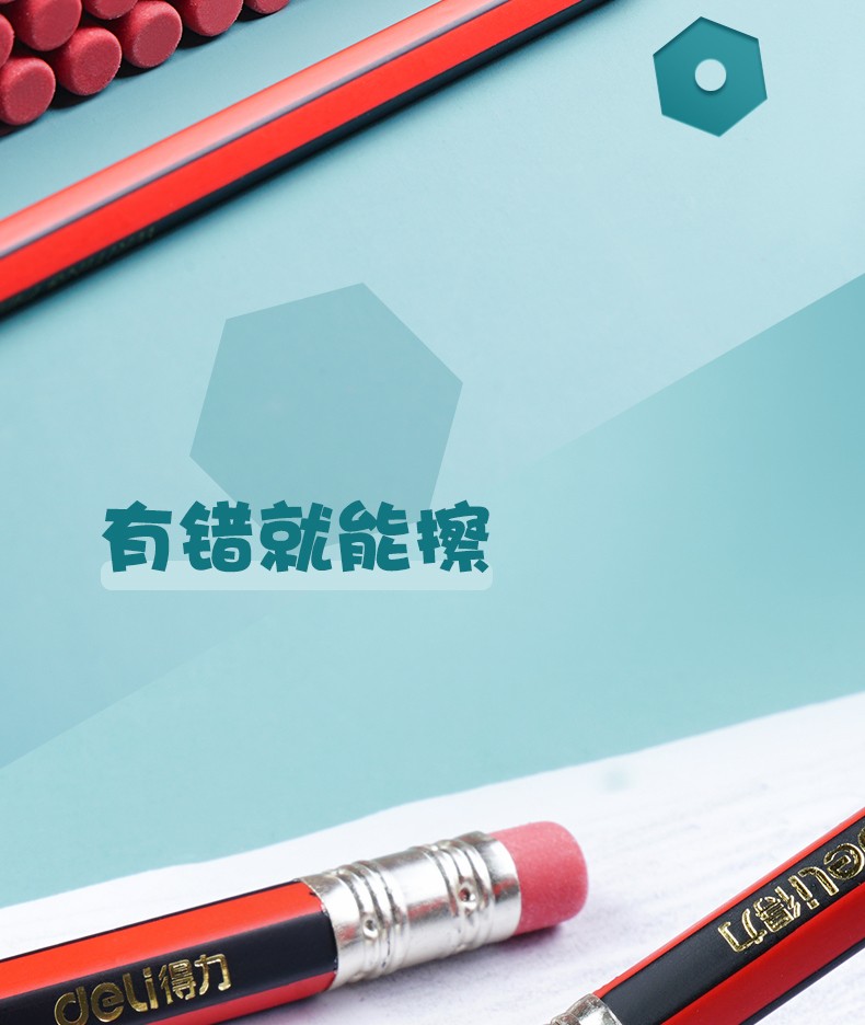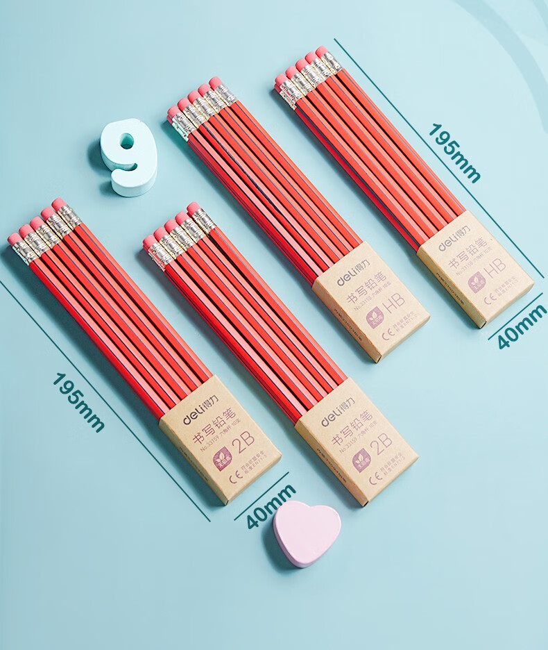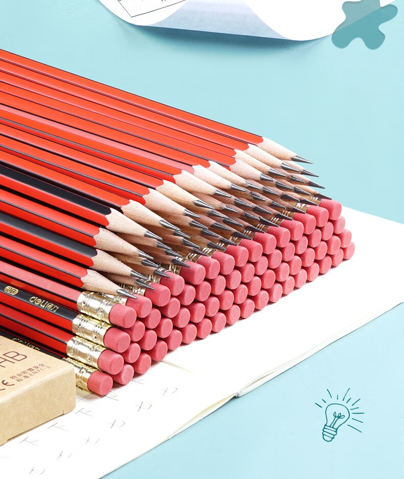 【20支】得力2b鉛筆文具橡皮頭鉛筆套裝HB六角筆桿素描繪圖美術(shù)考試學(xué)生鉛筆木質(zhì)紅桿日常書寫 2B兩卡裝/20支 自營