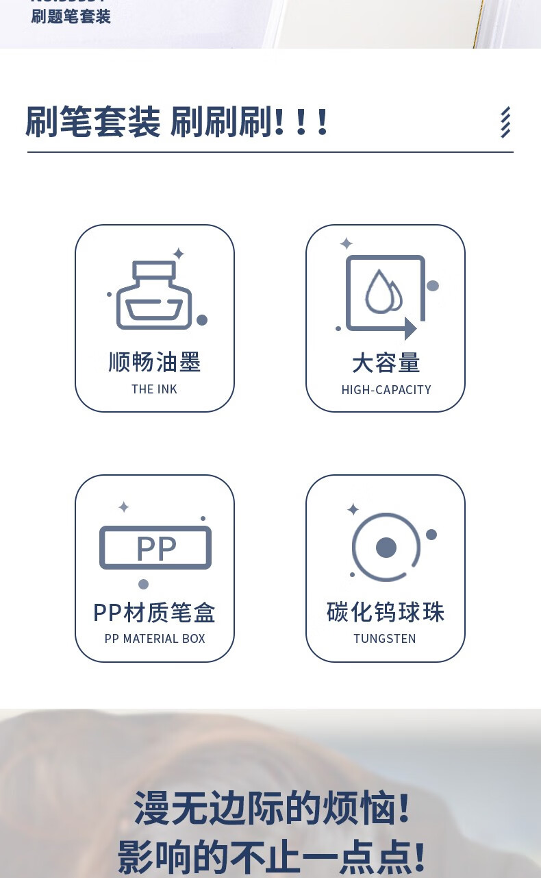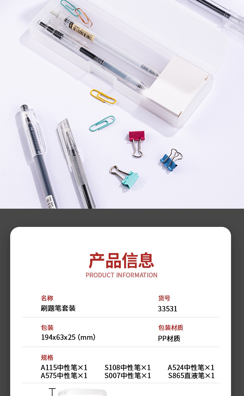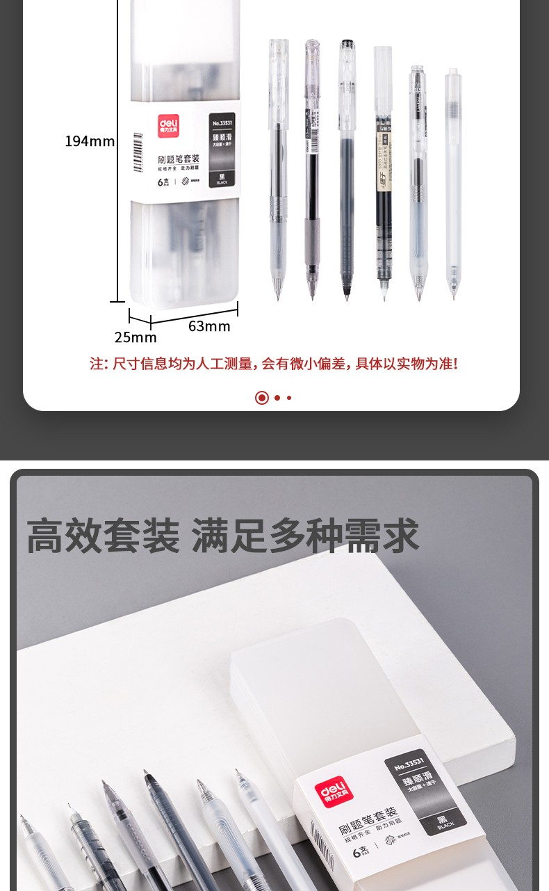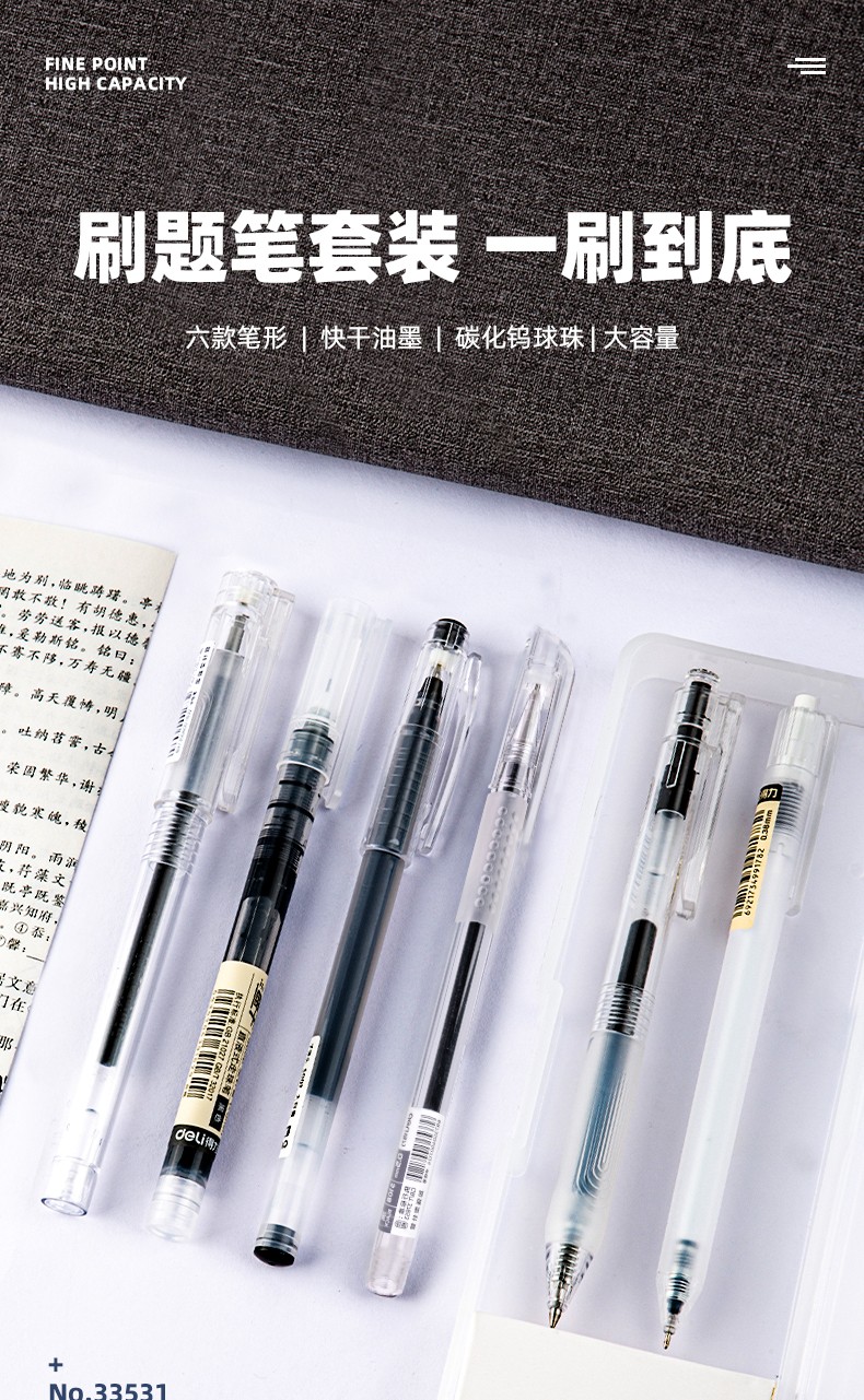 得力(deli)刷題筆套裝中性筆盒裝學(xué)生考試專用子彈頭臻順滑加強型全針管簡約風(fēng)格水筆文具禮盒 刷題筆套裝-6支裝 33531 自營
