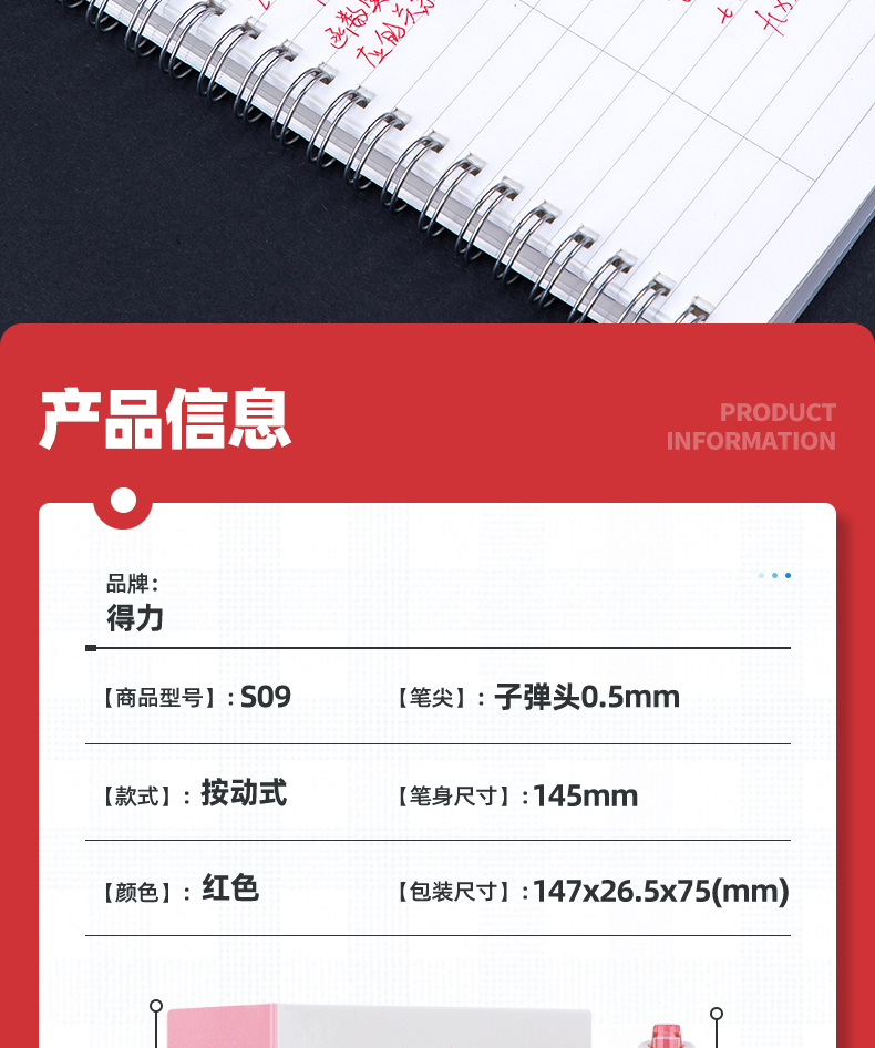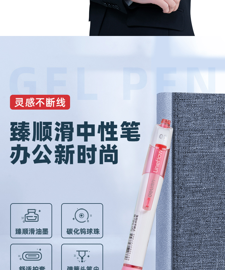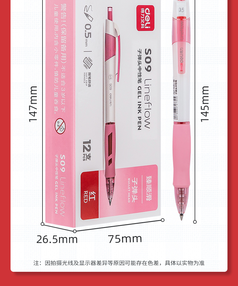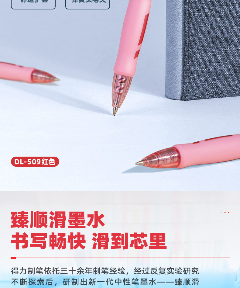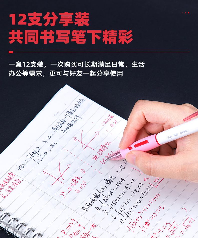 得力按動簽字筆0.5mm子彈頭中性筆紅筆文具經(jīng)典碳筆商務(wù)辦公學(xué)生用臻順滑水筆辦公用品 【3支】紅色按動筆 0.5mm 自營
