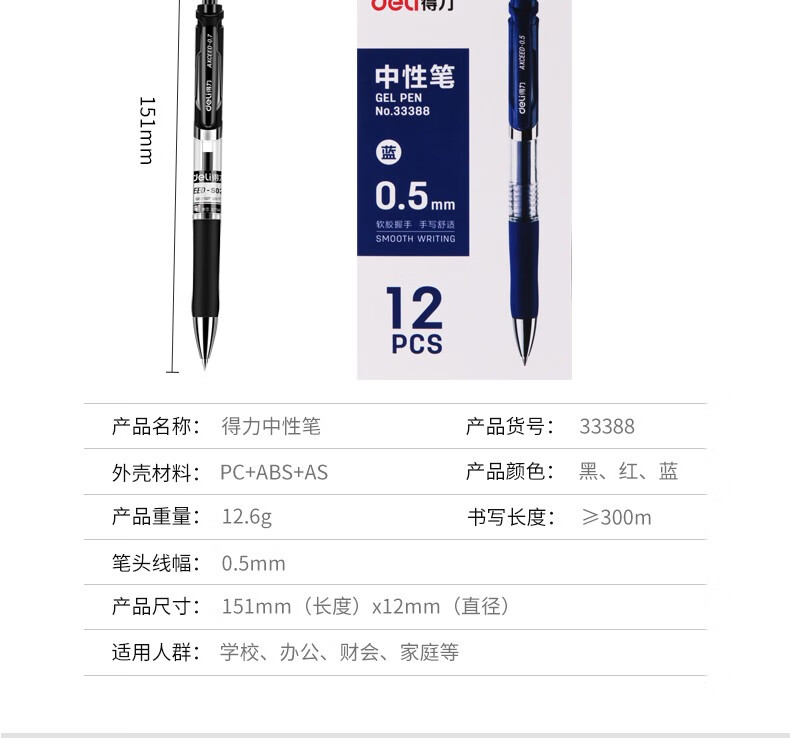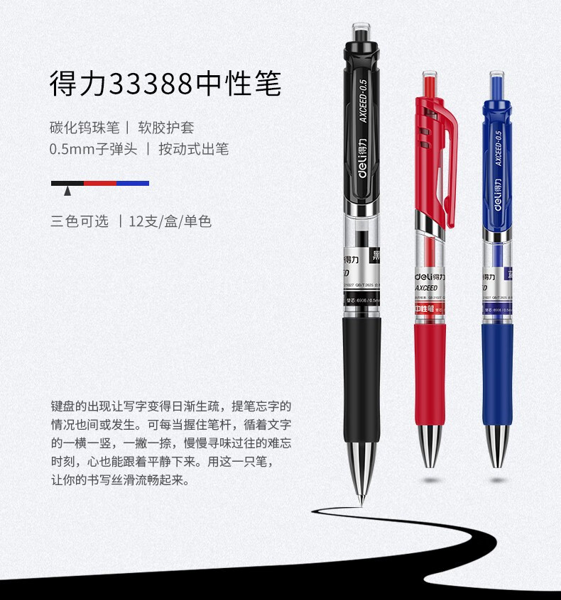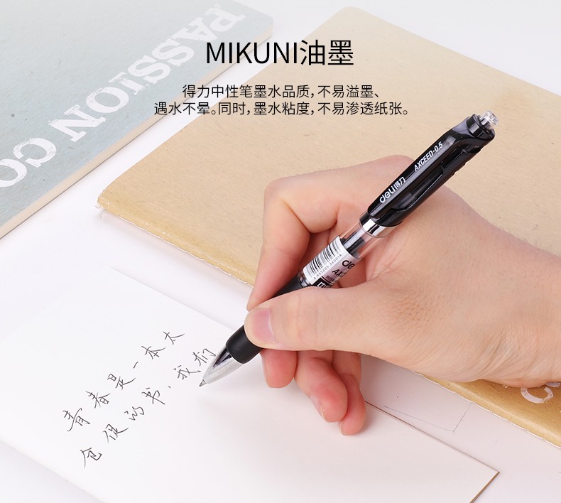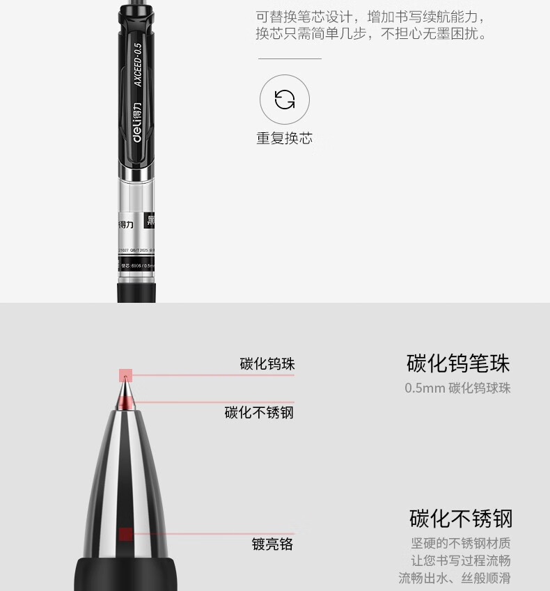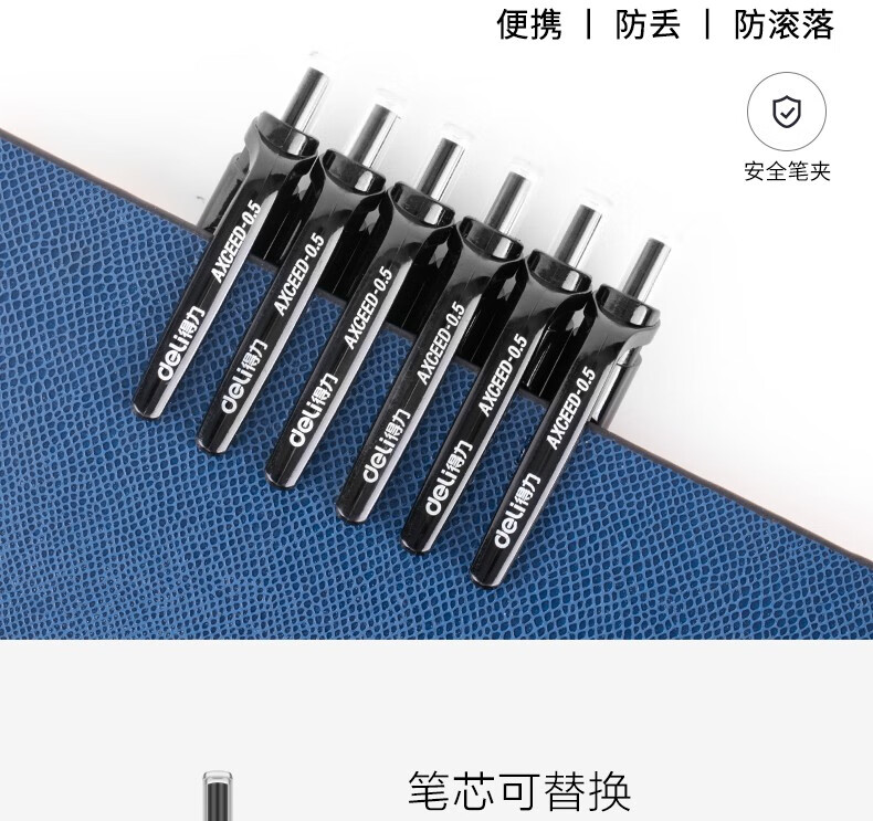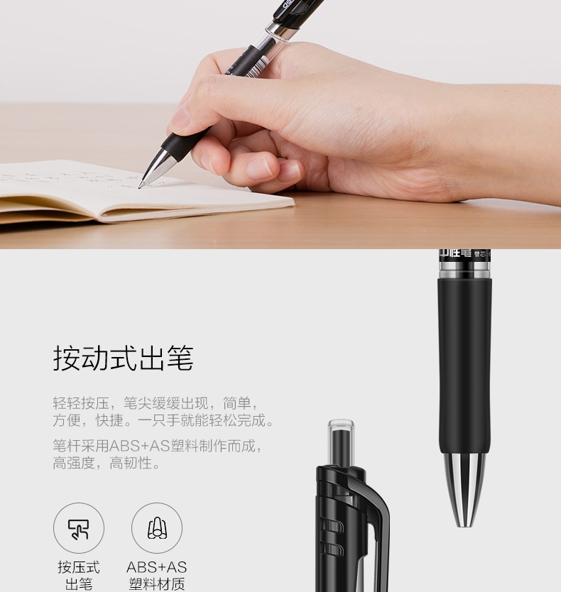 ¥24.25得力按動(dòng)中性筆頭0.5mm學(xué)生用考試辦公商務(wù)專用彈簧碳素自動(dòng)水筆圓珠簽字按動(dòng)式按壓筆 按動(dòng)黑筆52件套(12支筆+40支筆芯)