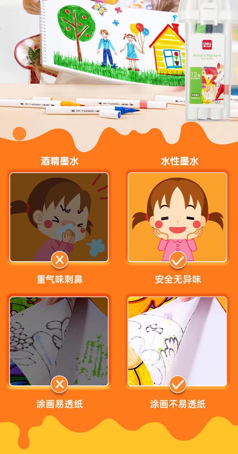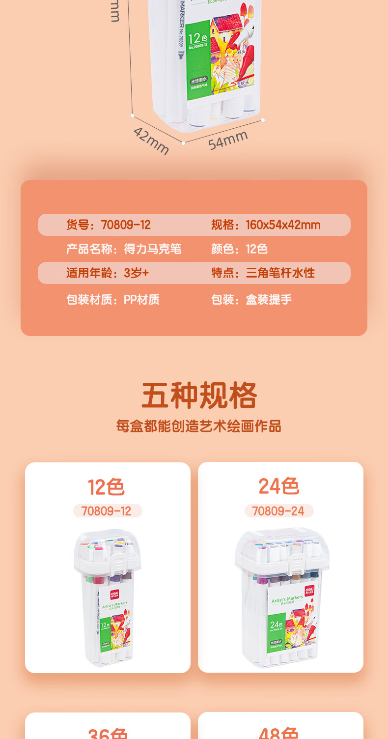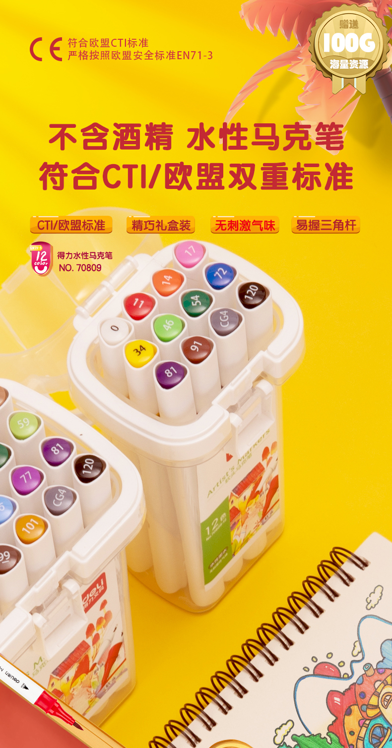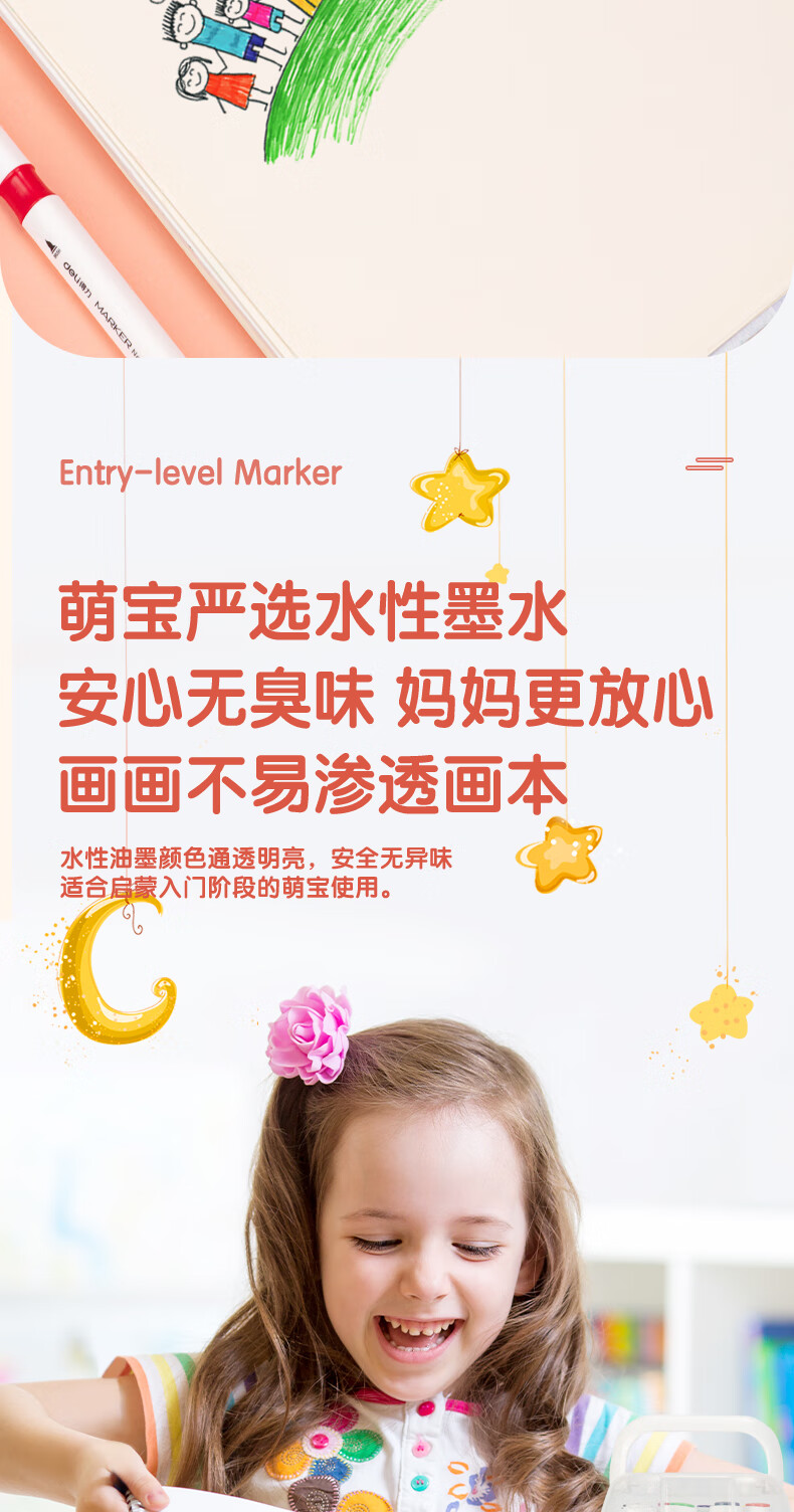 得力(deli)汪汪隊(duì)立大功36色可水洗印章頭學(xué)生水彩筆 兒童繪畫筆 王子藍(lán)70699