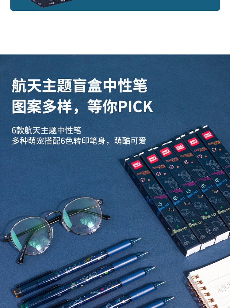 得力(deli)問(wèn)蒼穹中性筆 盲盒筆 簽字筆0.5mm子彈頭 單支裝A613 自營(yíng)