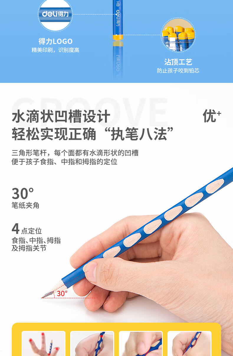 得力(deli)洞洞鉛筆矯姿筆36支HB三角桿 粗桿易抓握原木書寫鉛筆兒童矯姿鉛筆學(xué)生練字筆 58191 自營