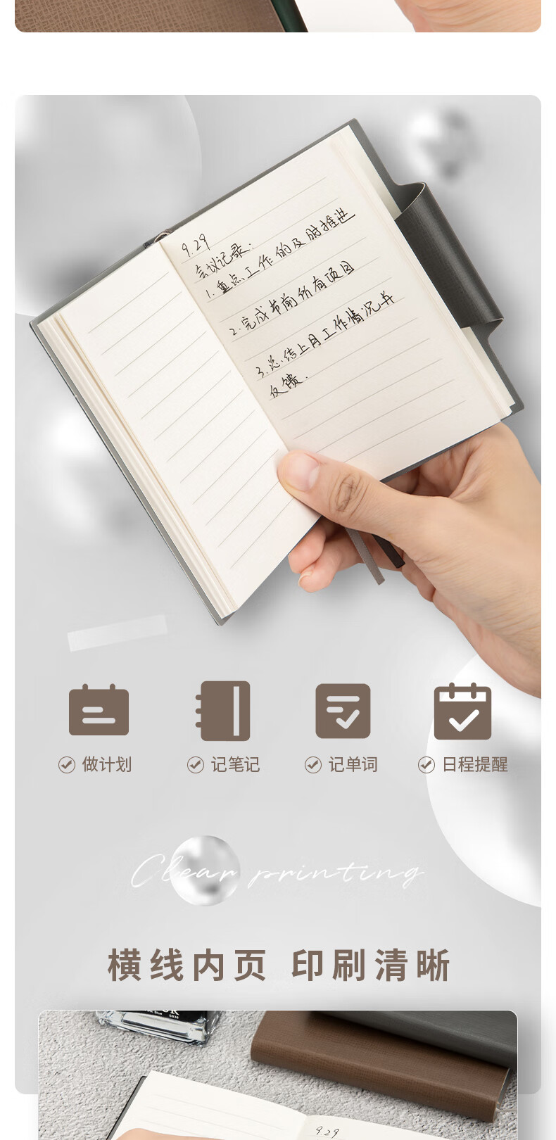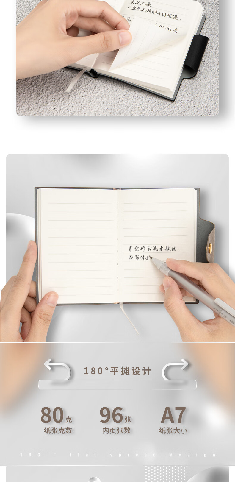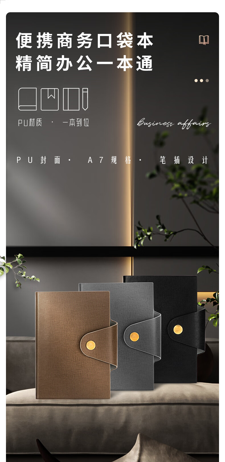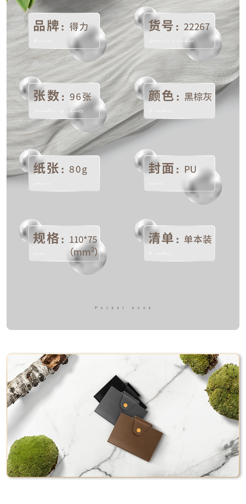 得力(deli)按扣口袋本筆記本子 便攜隨身迷你小號(hào)學(xué)生記事本手賬本會(huì)議日記本文具 灰色A7/96張 22267 自營(yíng)