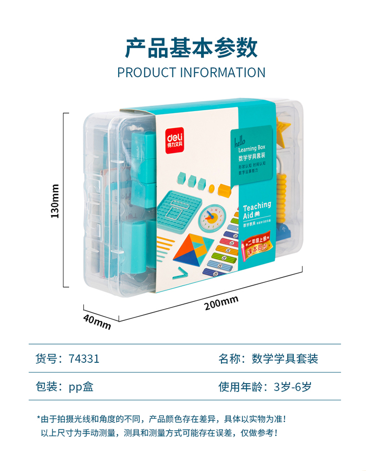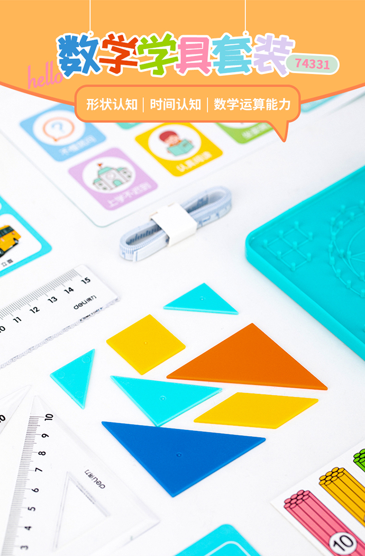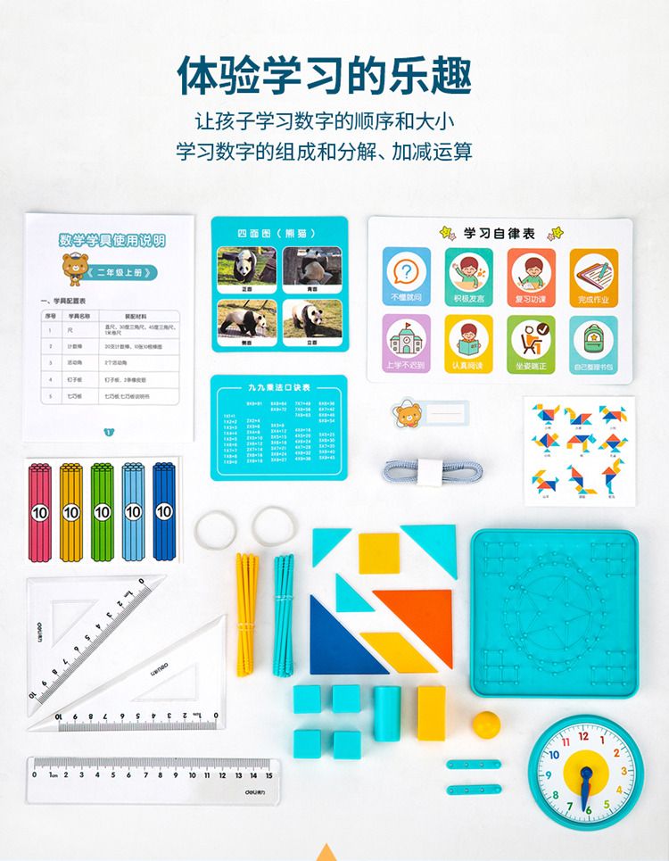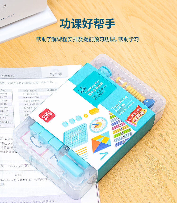 得力(deli)學具盒套裝小學生二年級數(shù)學上冊 同步人教版教材 數(shù)字運算形狀邏輯認知教學教具 74331 自營