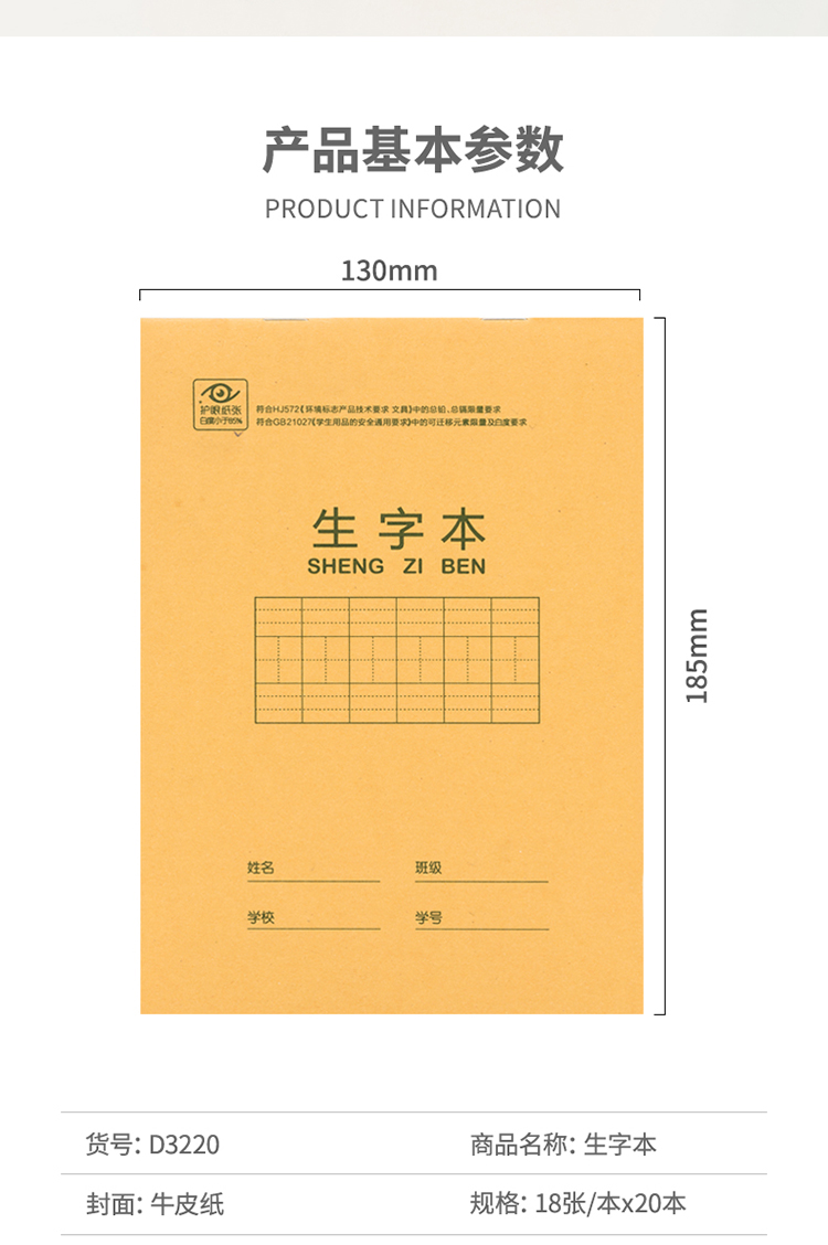 得力(deli)32K18張豎翻小學生生字本作業(yè)本軟抄本筆記本子文具 20本裝D3220 自營