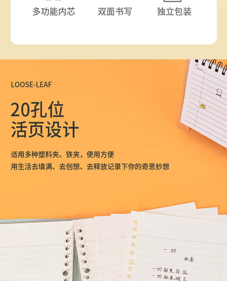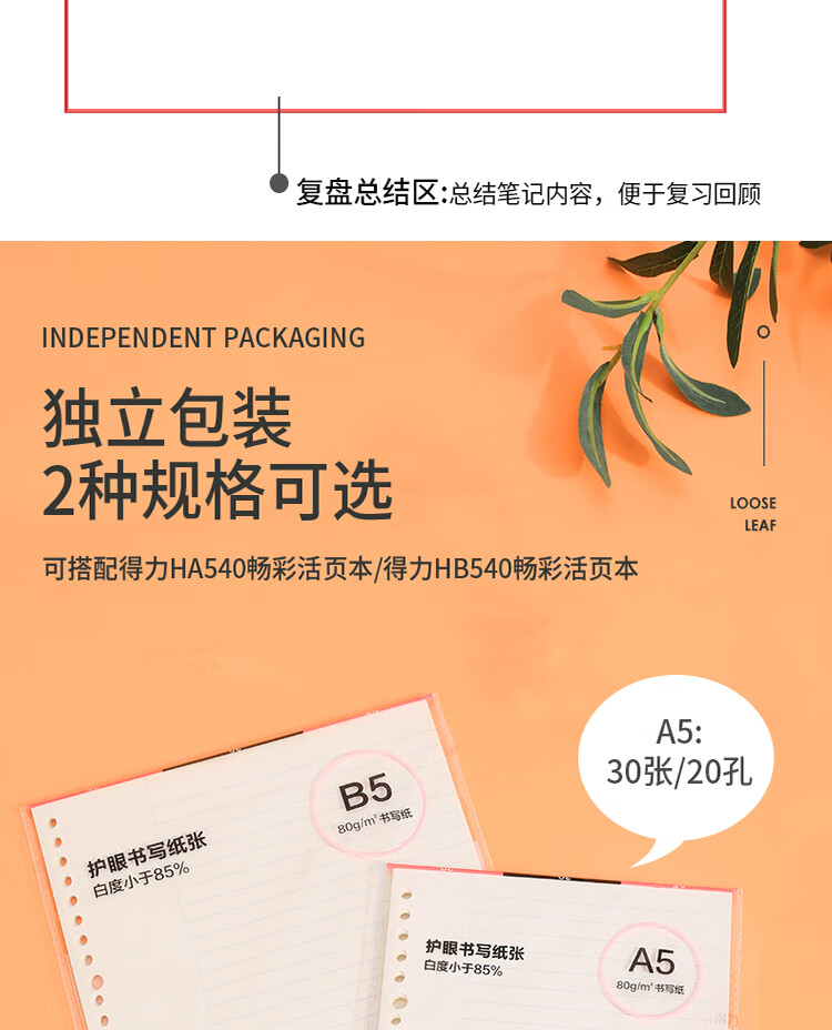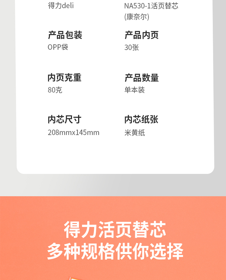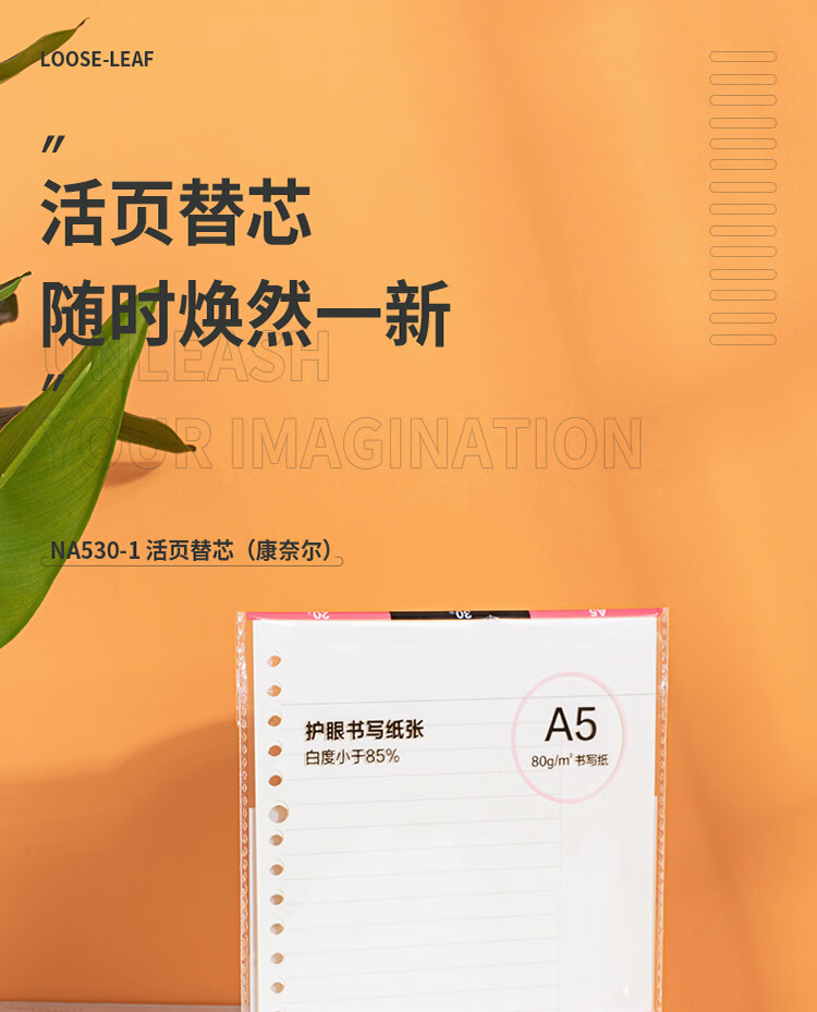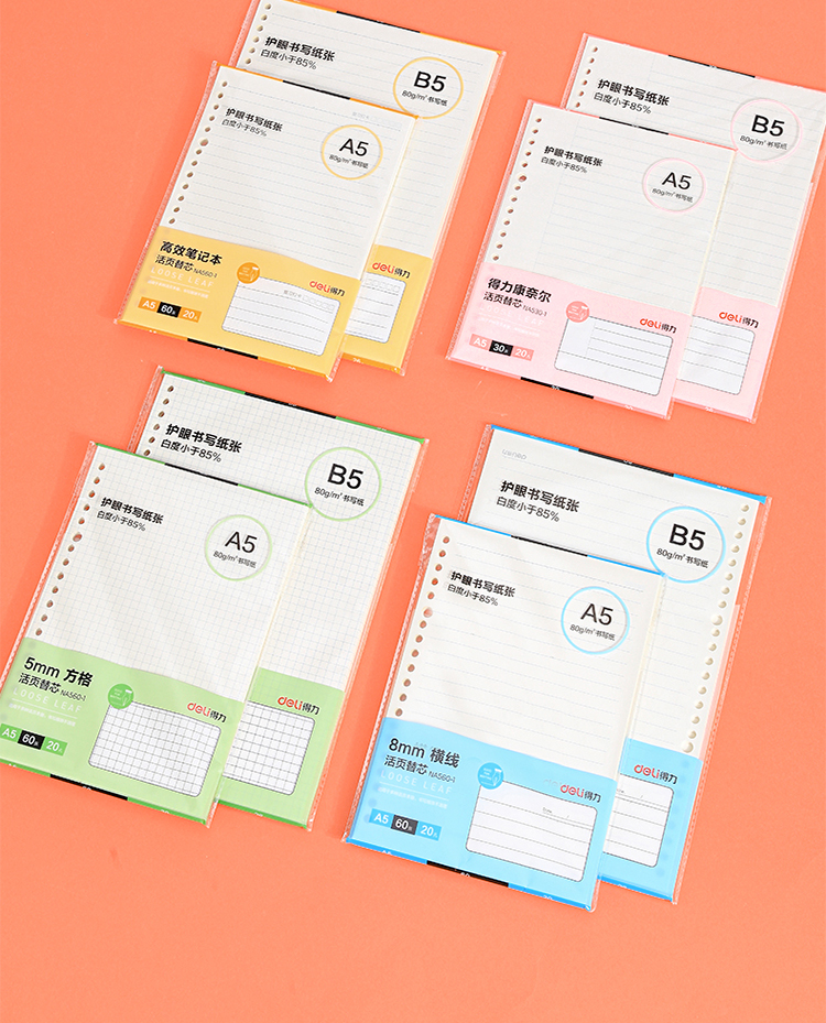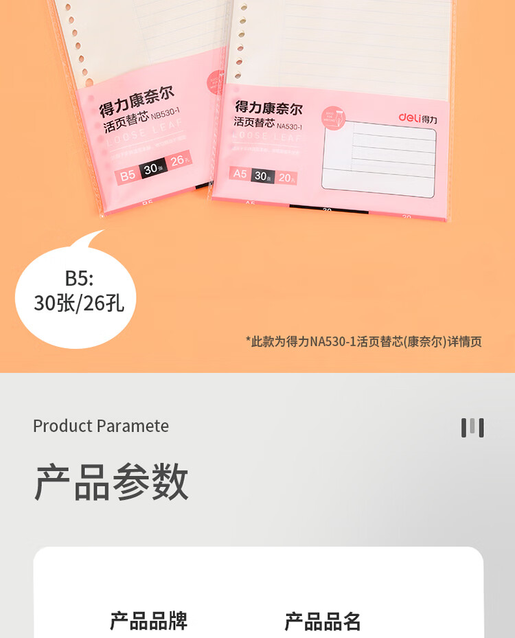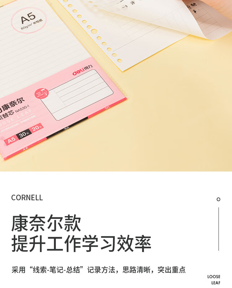 得力(deli) A5/30張活頁筆記本替芯 20孔康奈爾格式替芯活頁紙 NA530-1 自營
