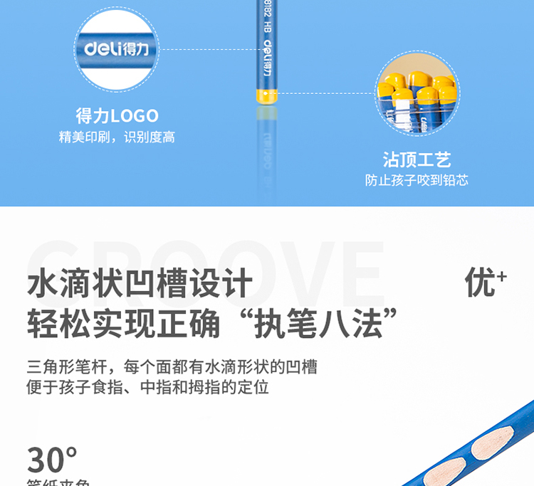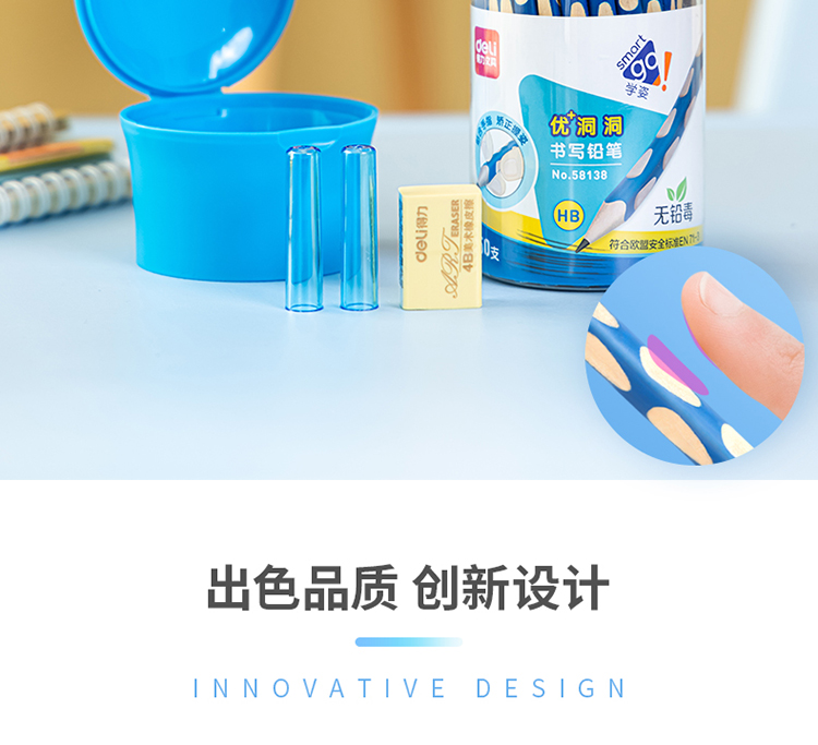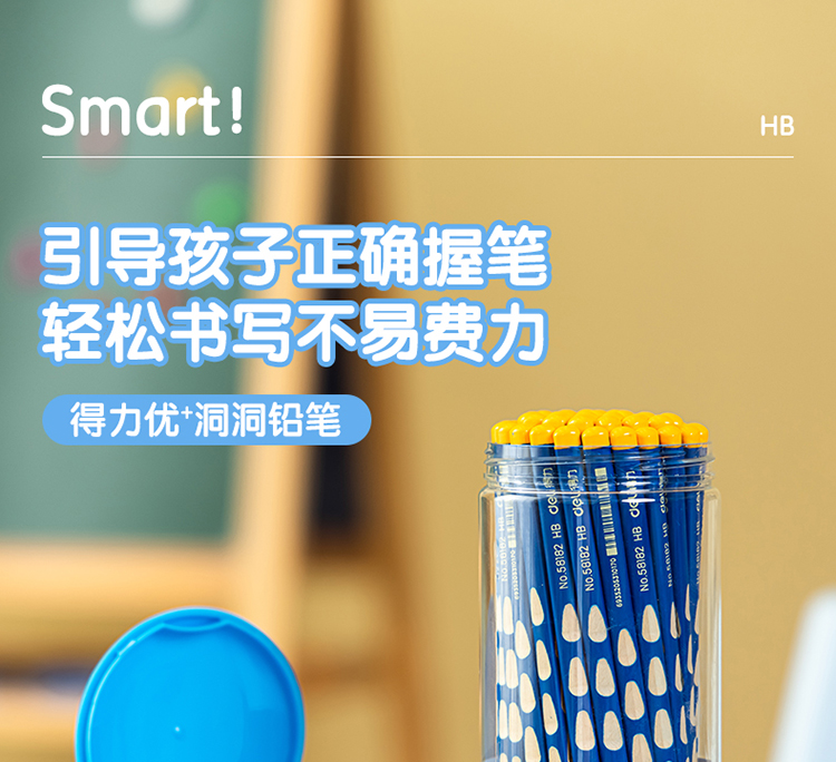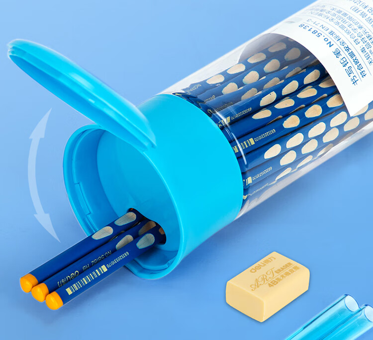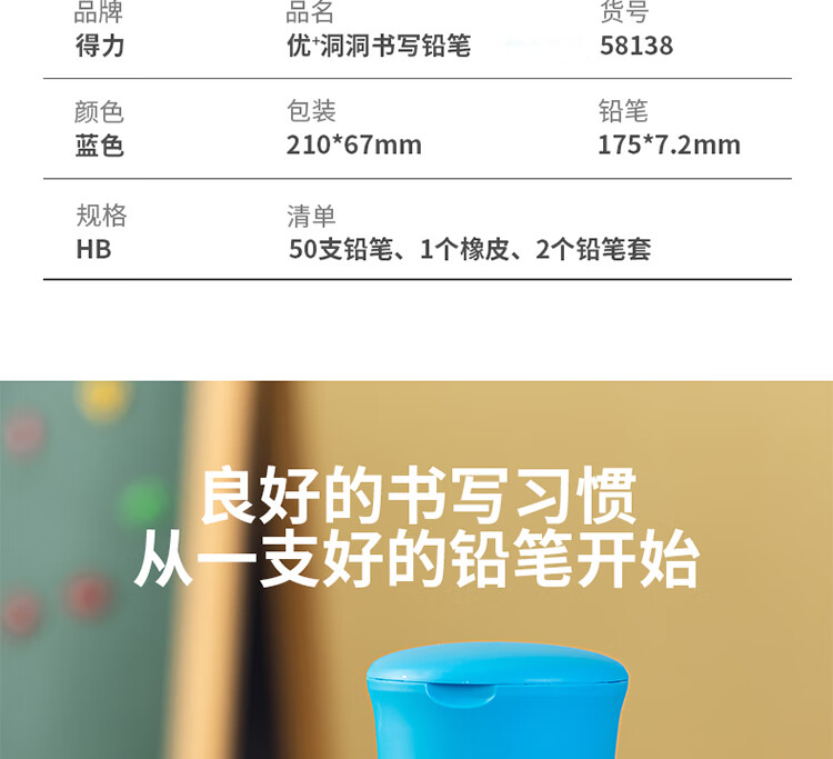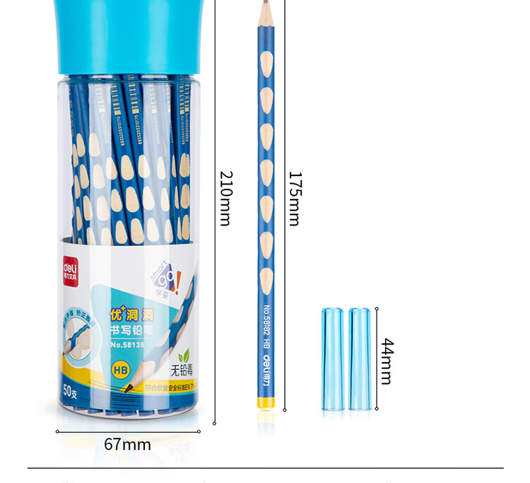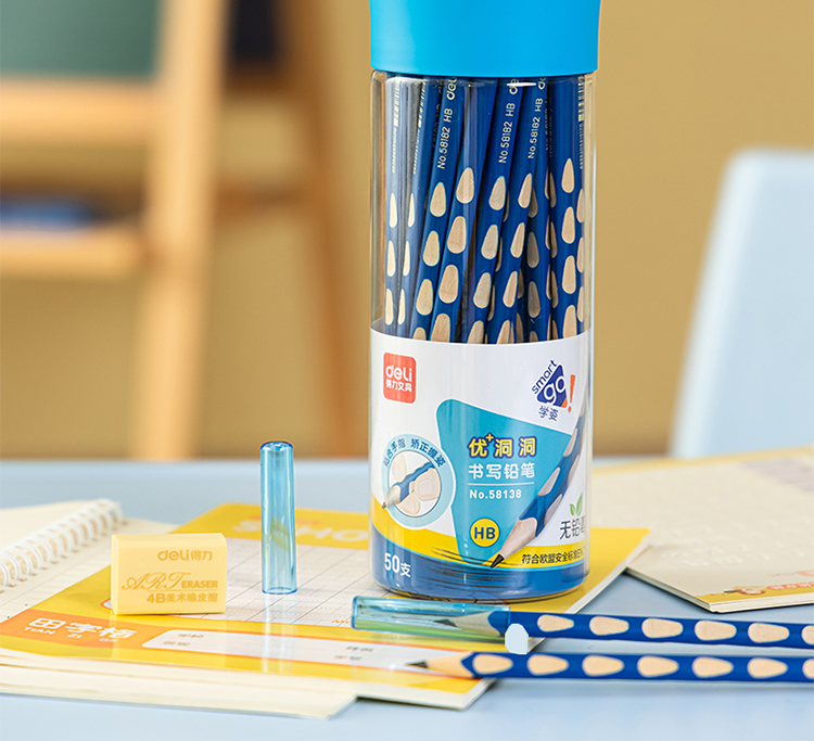 得力(deli)洞洞筆鉛筆 50支HB三角桿易抓握書(shū)寫(xiě)鉛筆 兒童矯姿鉛筆 學(xué)生練字筆 帶橡皮鉛筆護(hù)套 58138 自營(yíng)